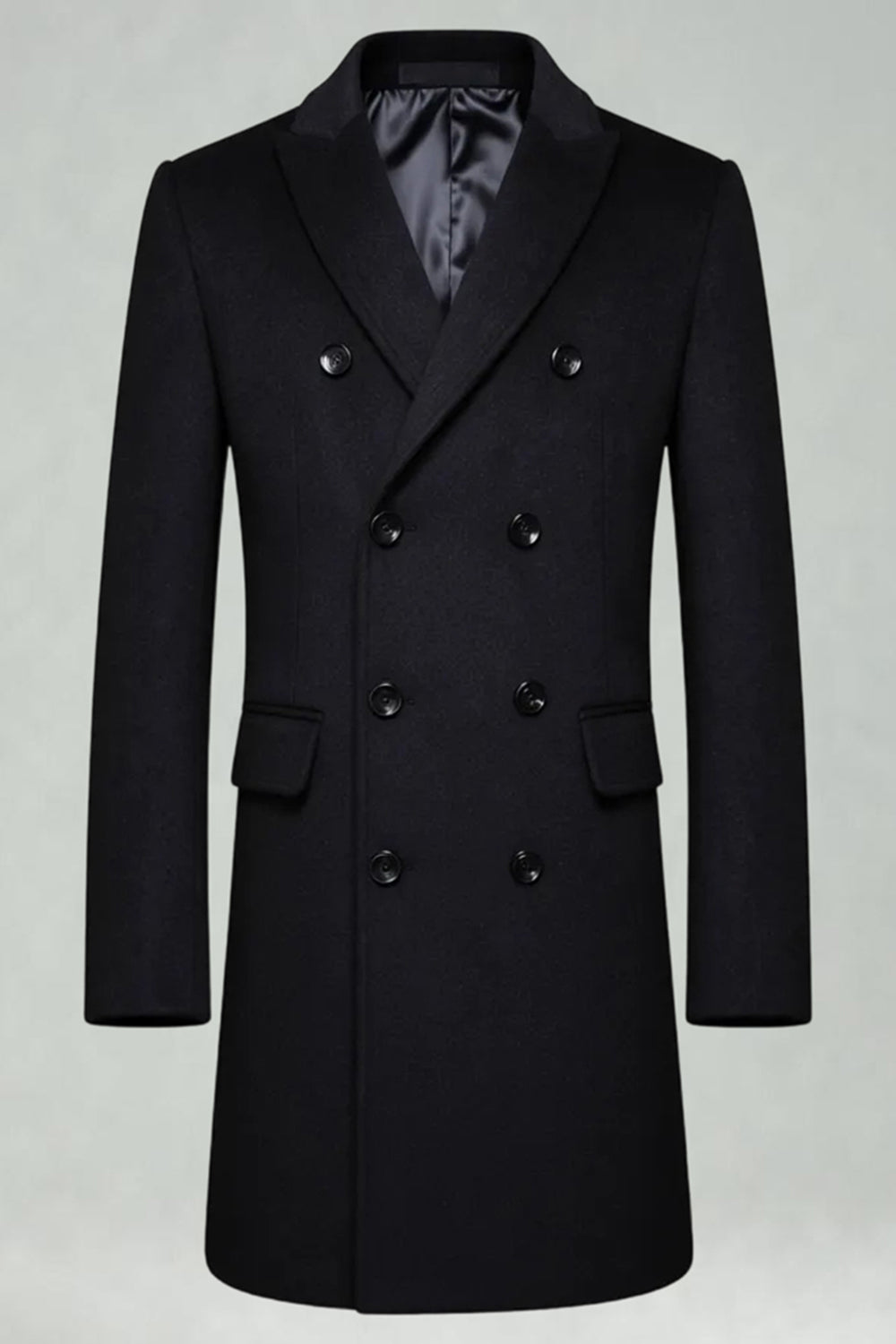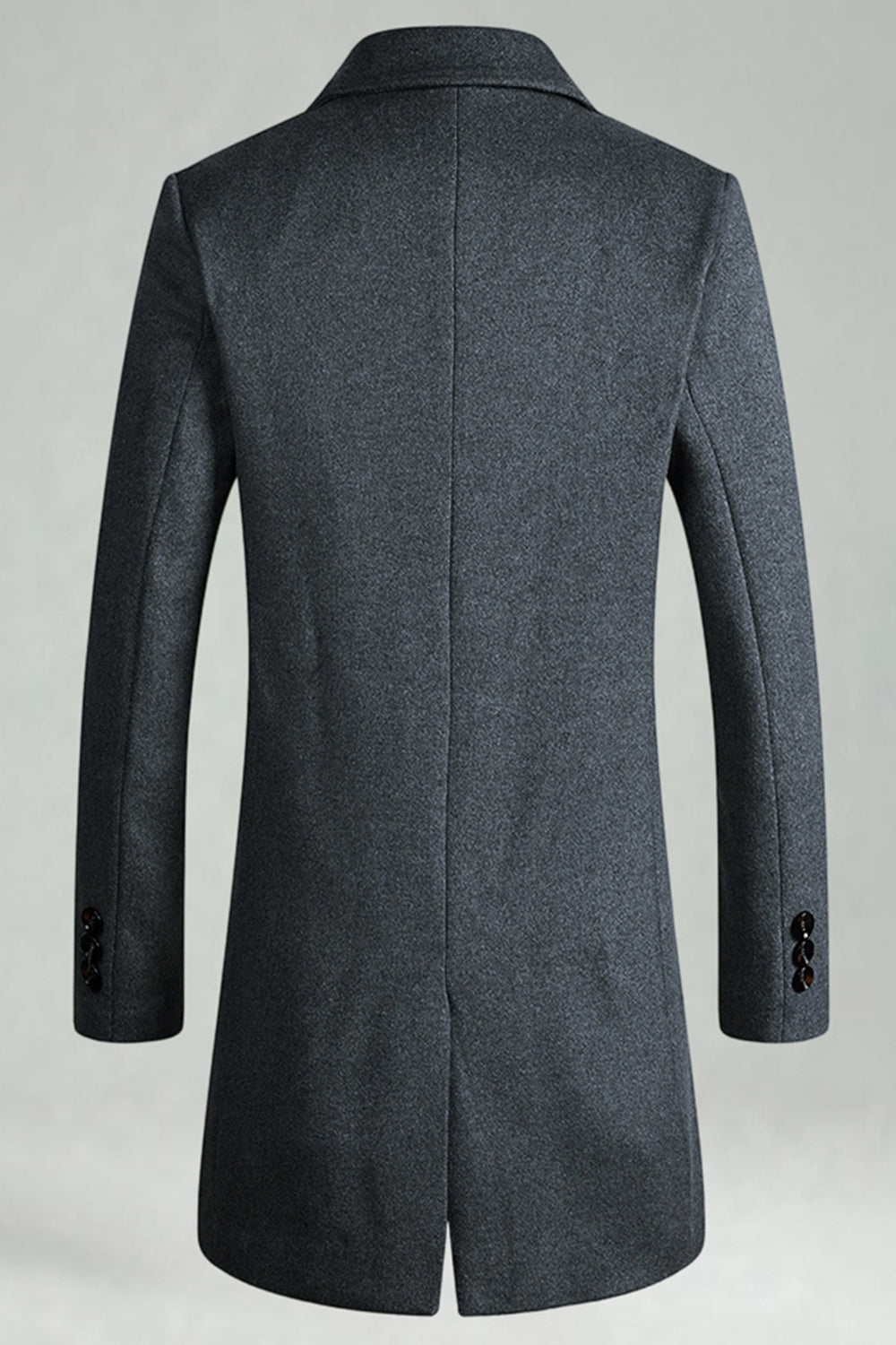 Peak Lapel dubbelknäppt lång grå vinterkappa för herrar