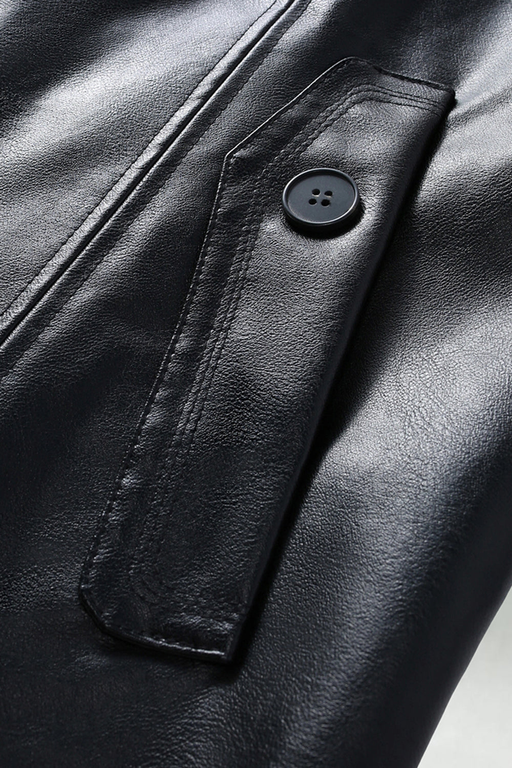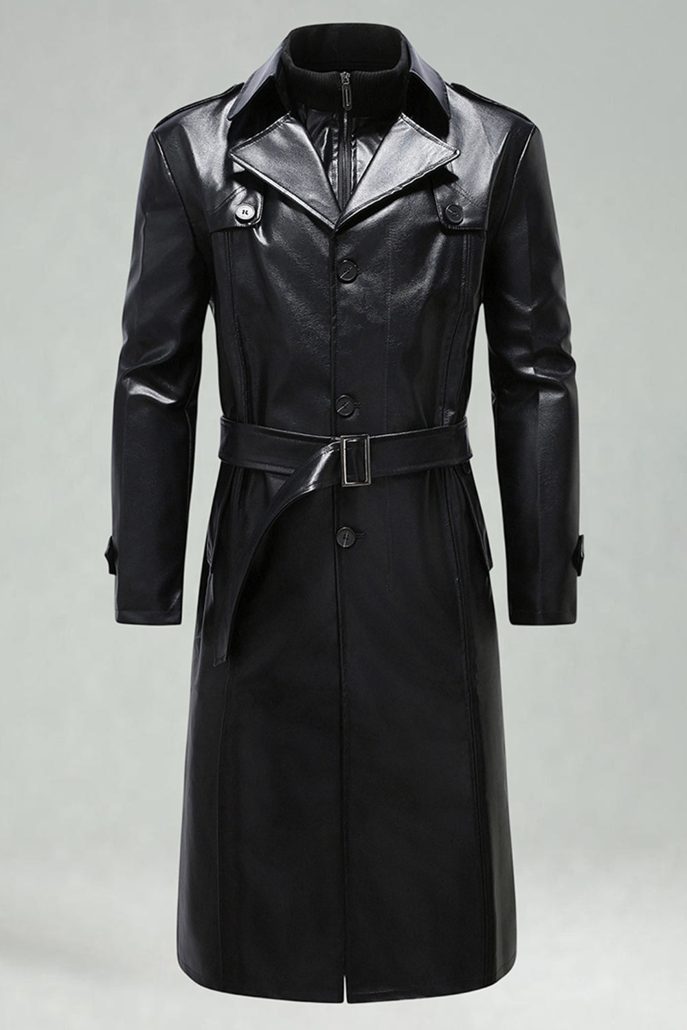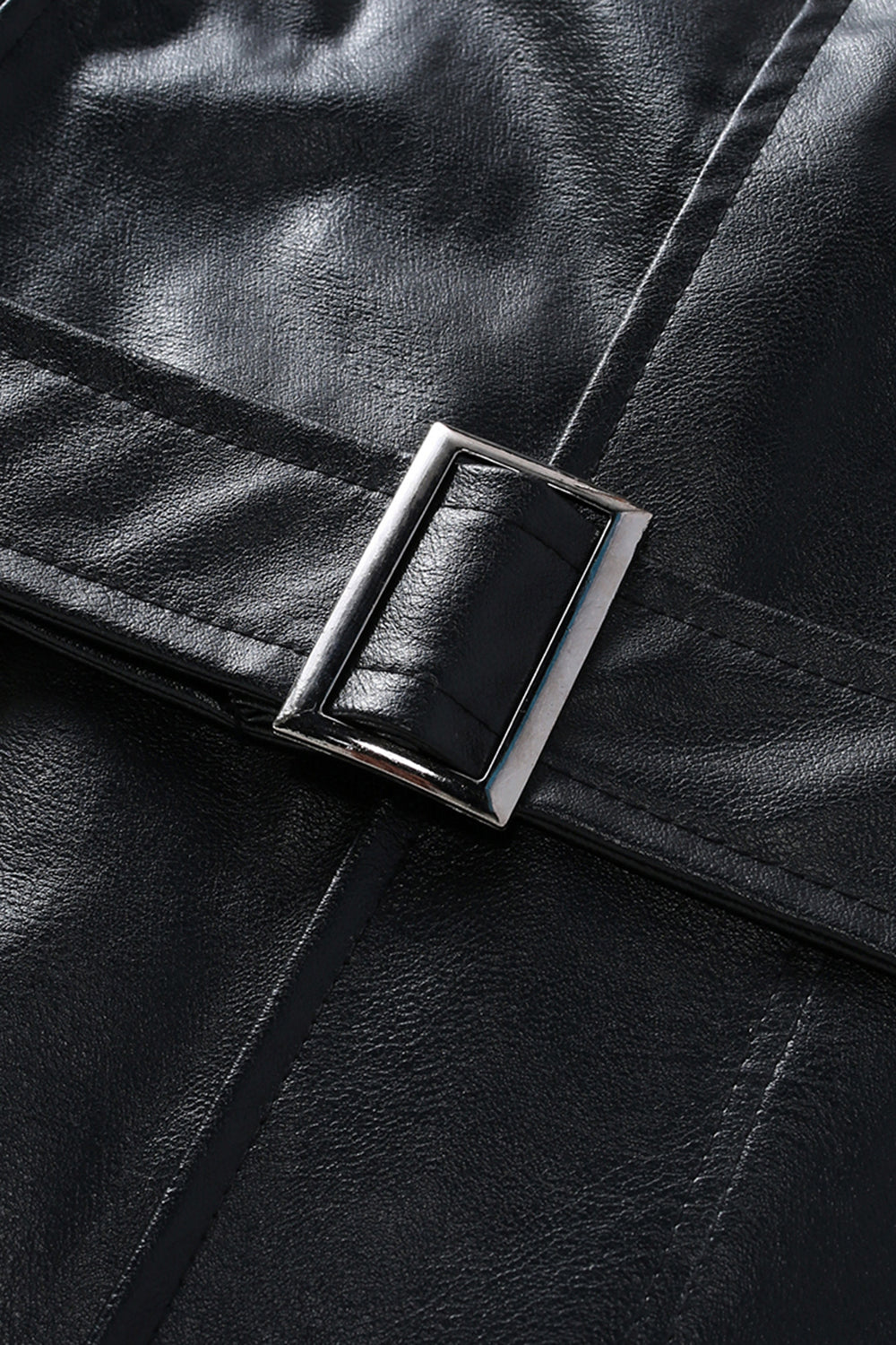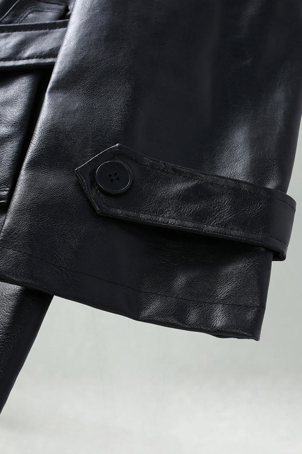 Svart Lädertrenchcoat med Notched Lapel och Bälte