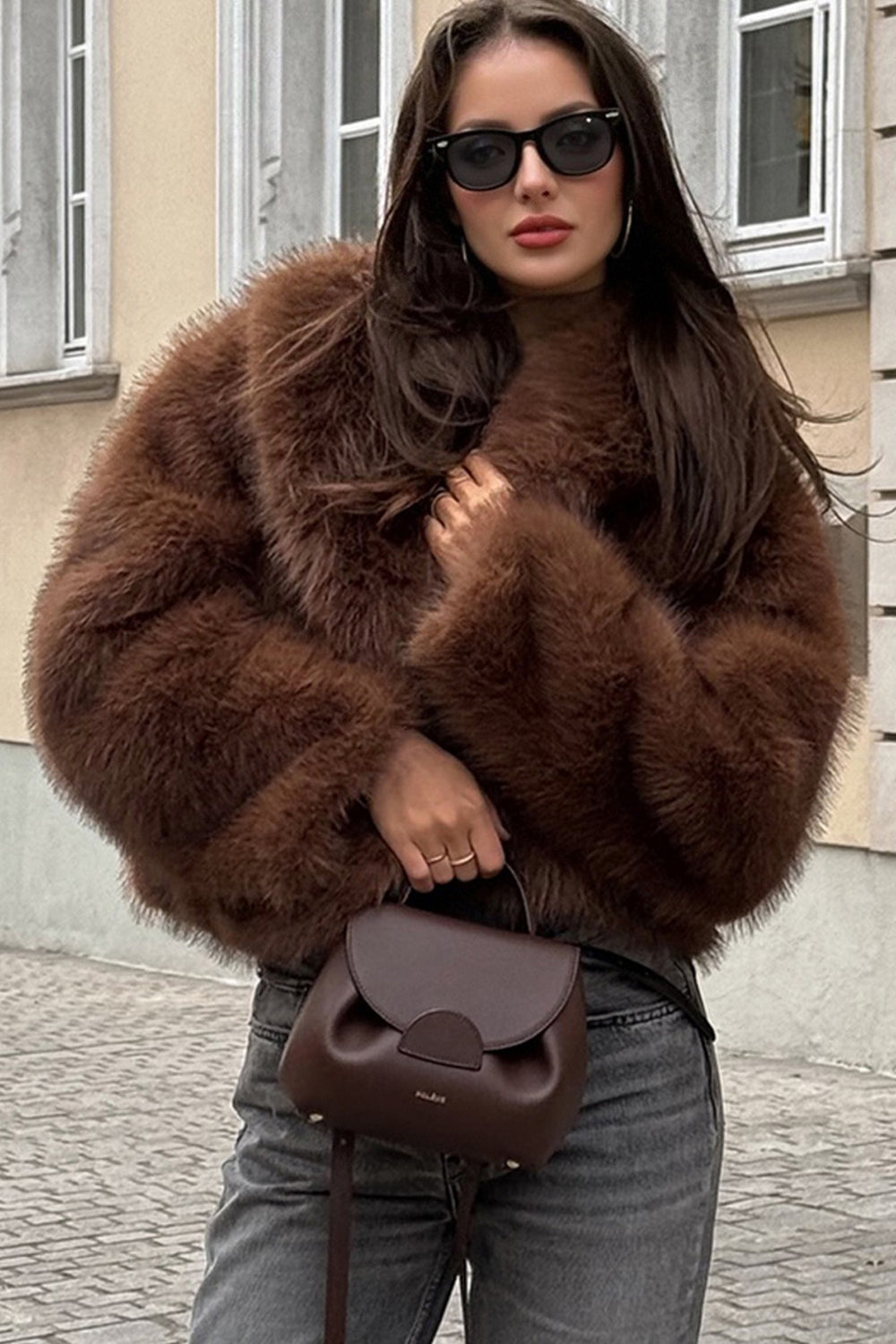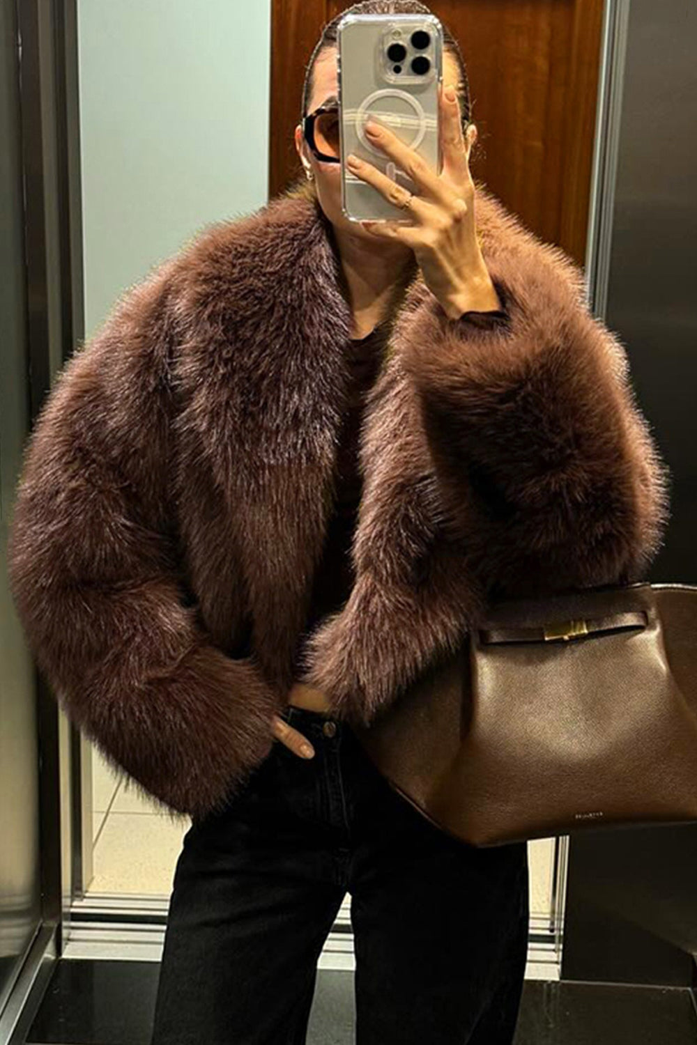 Brun sjal med kavajslag Falsk päls Damer Kort vinterrock