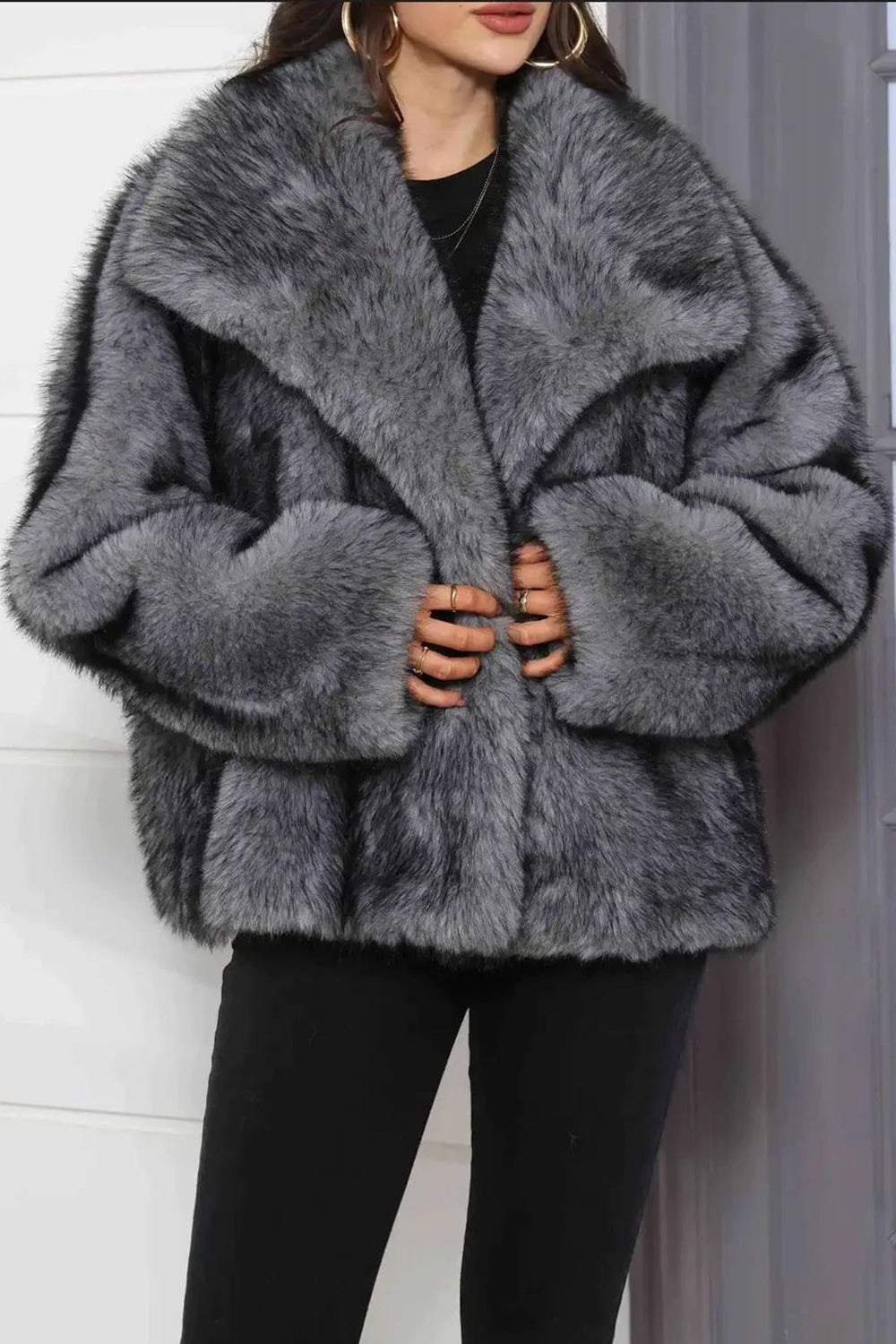 Burgundy konstpäls långärmad sjal med kavajslag för damer vinterrock
