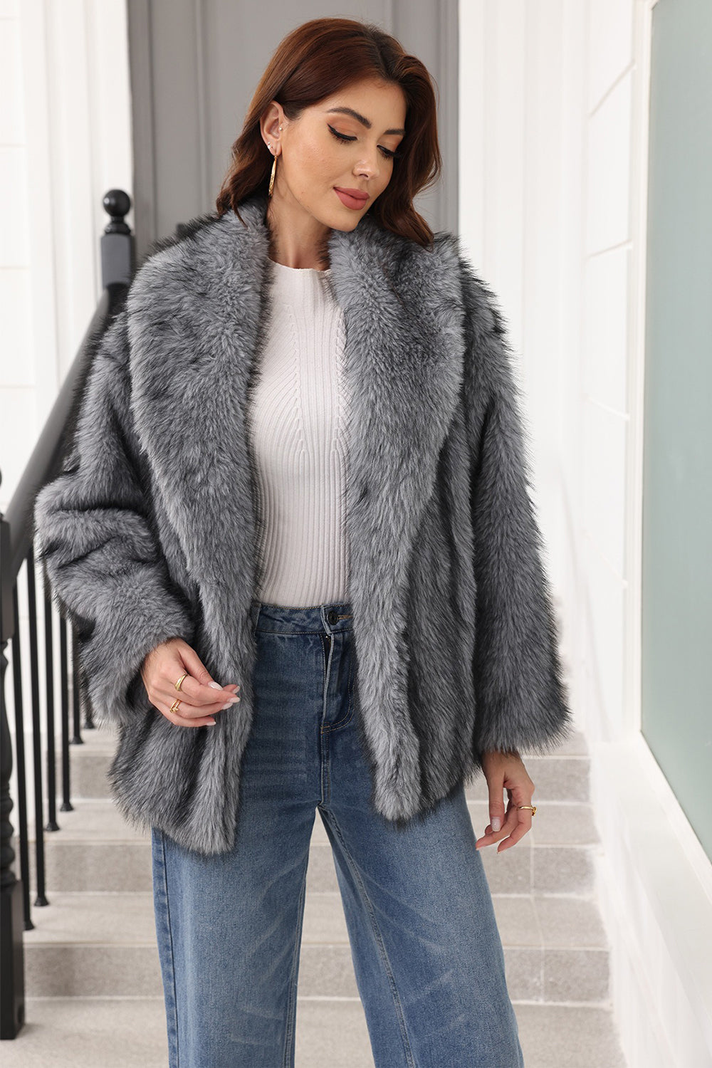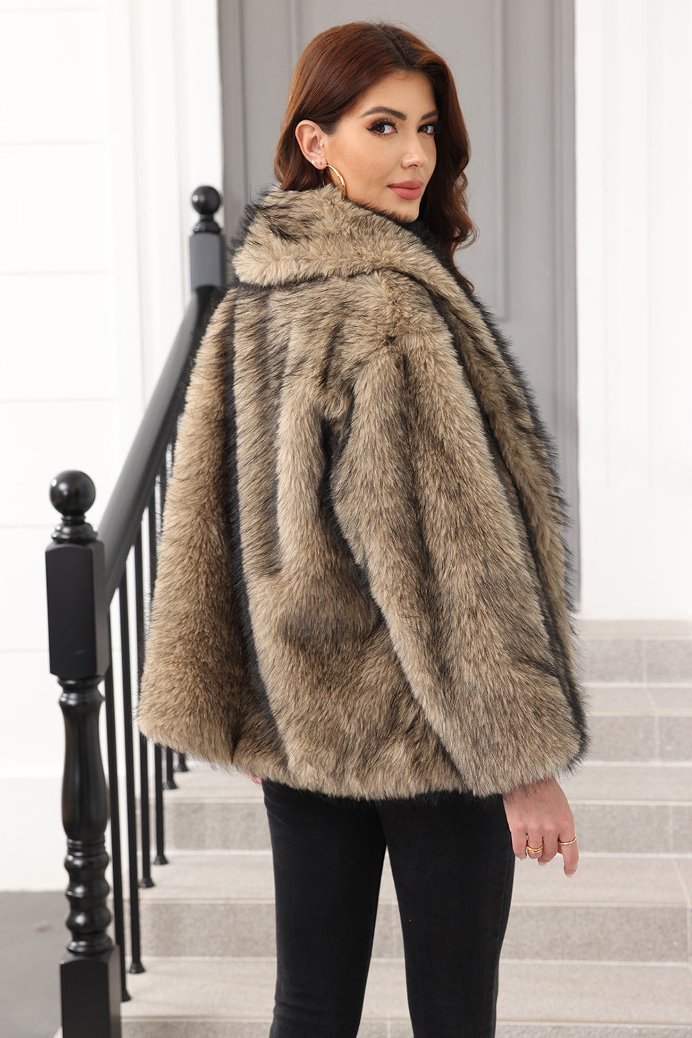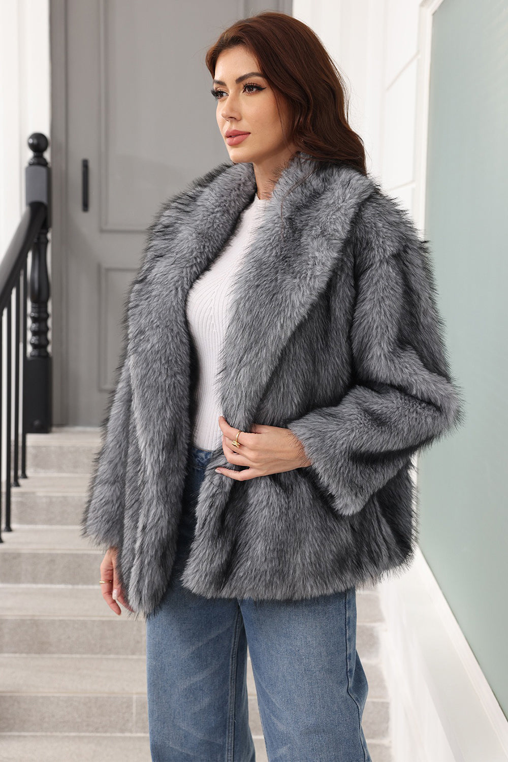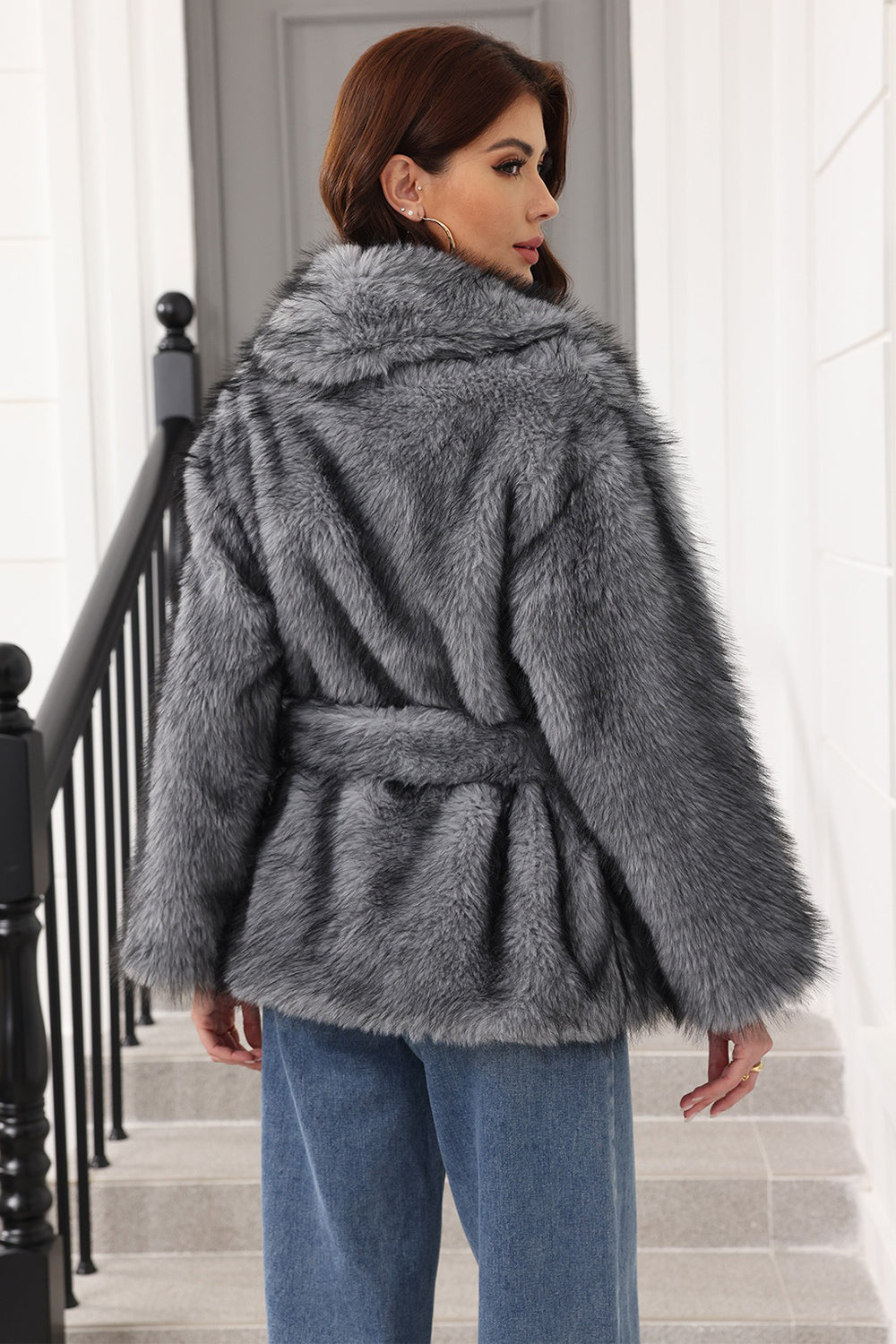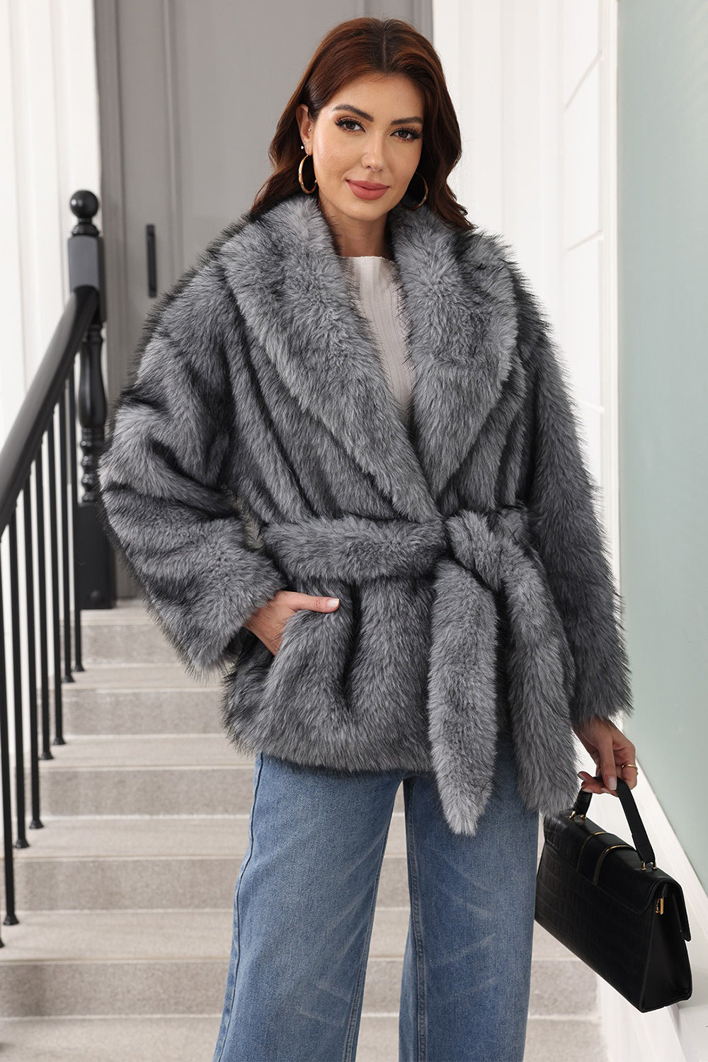 Kaffe Faux Fur Shawl Lapel Damjacka med bälte