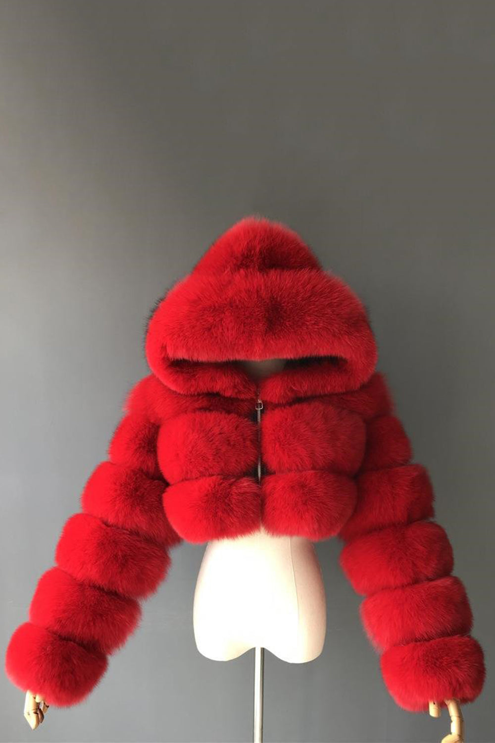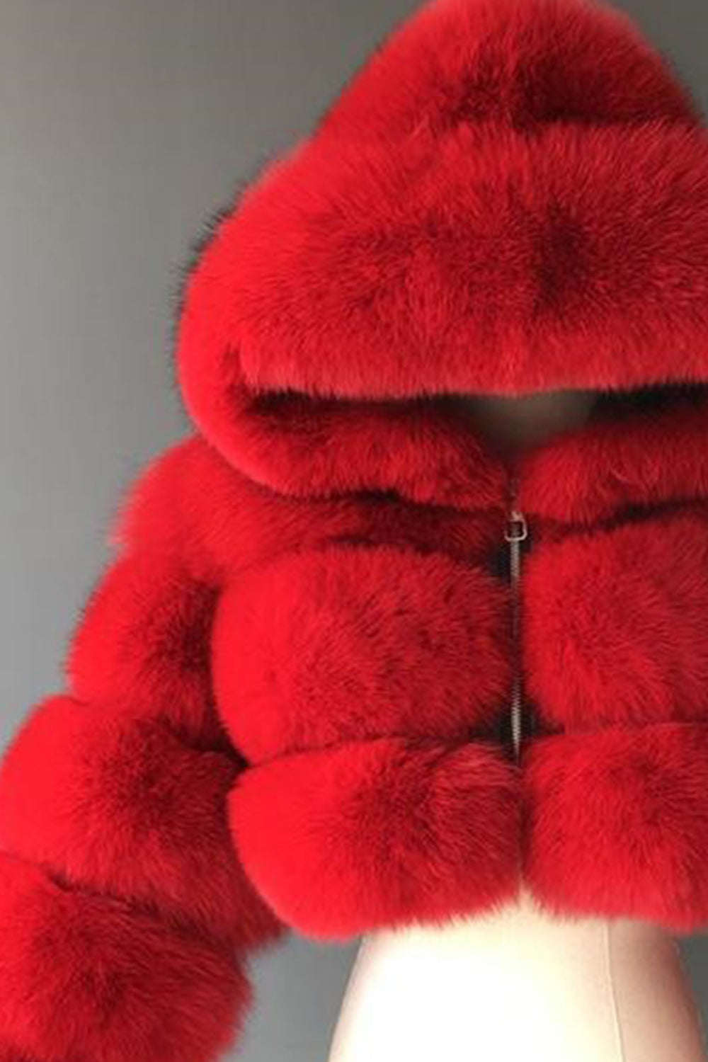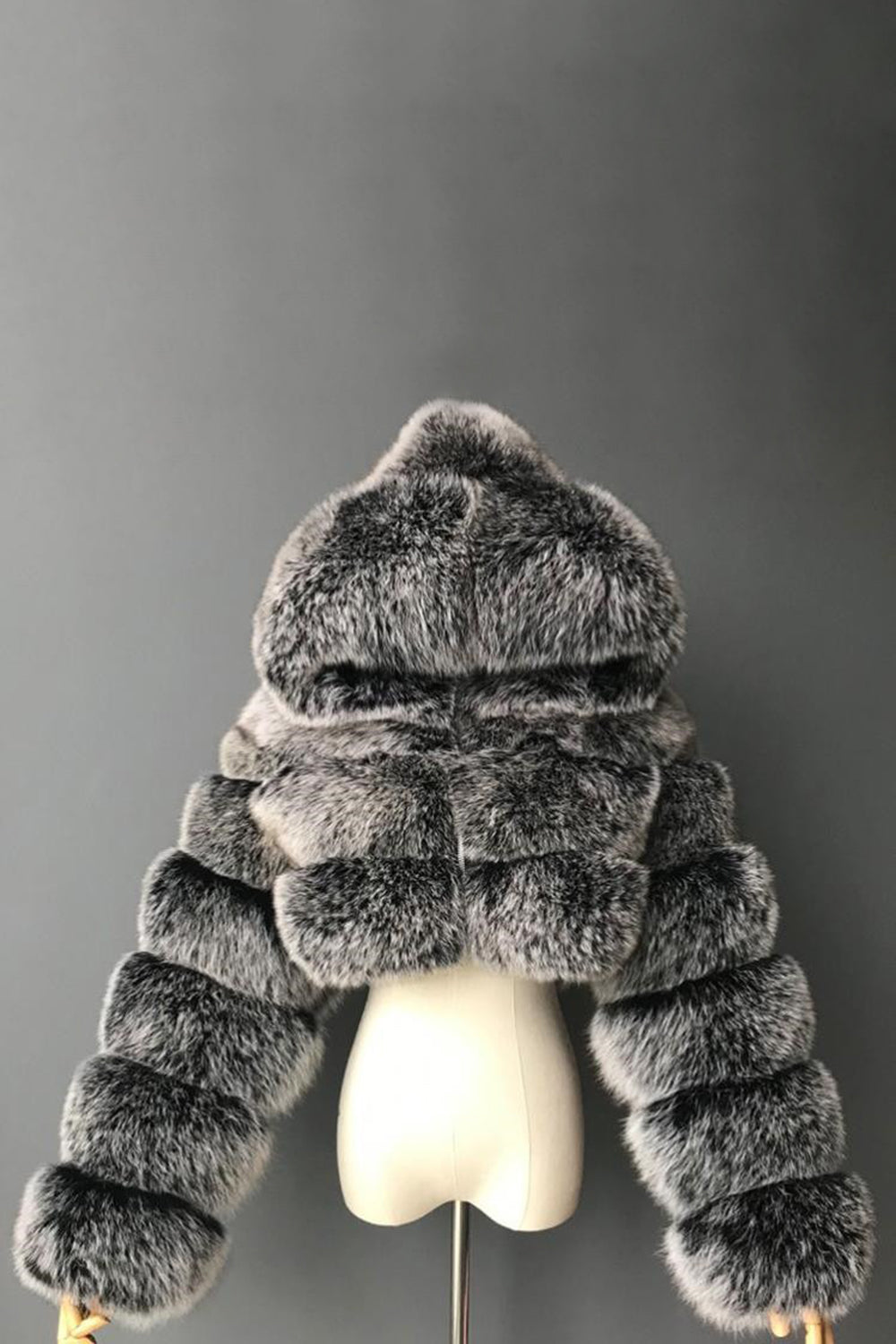 Kungligt blå huva med förtjockad konstpäls för kvinnor