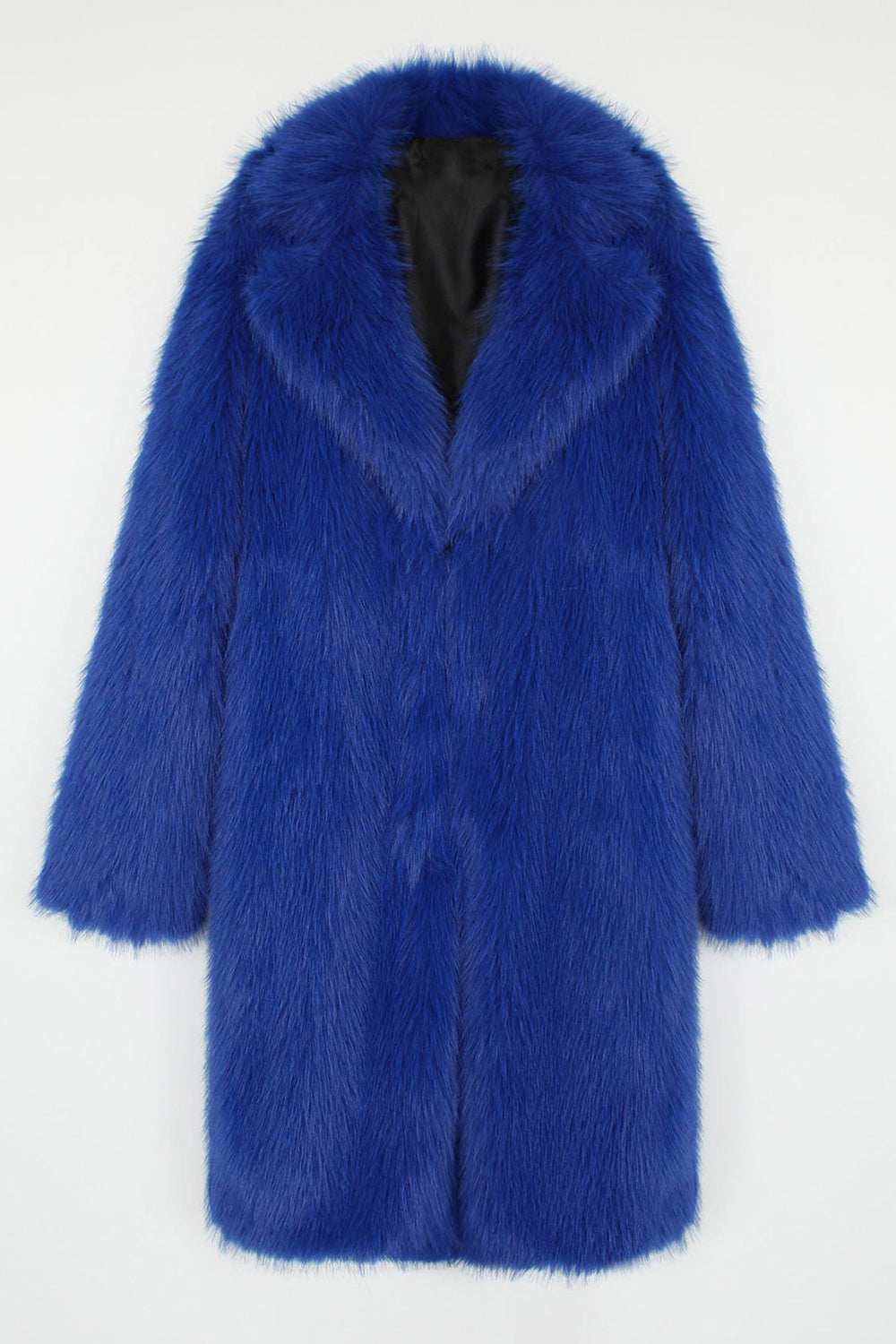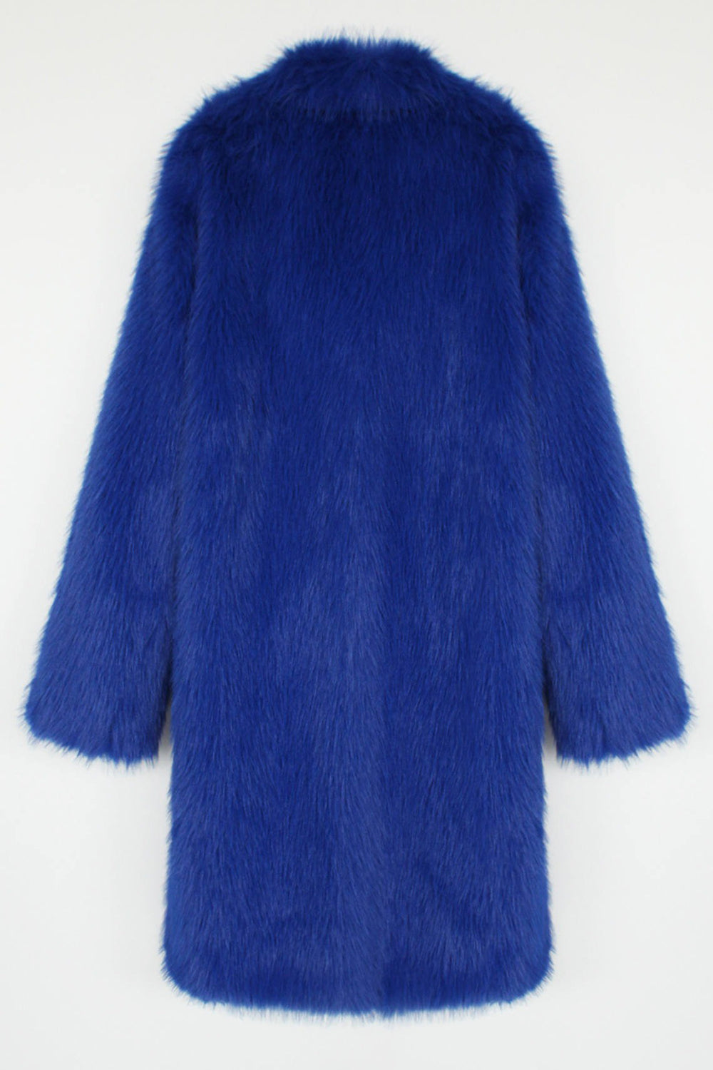 Kungligt blå rynkad damkappa i enfärgad fuskpäls