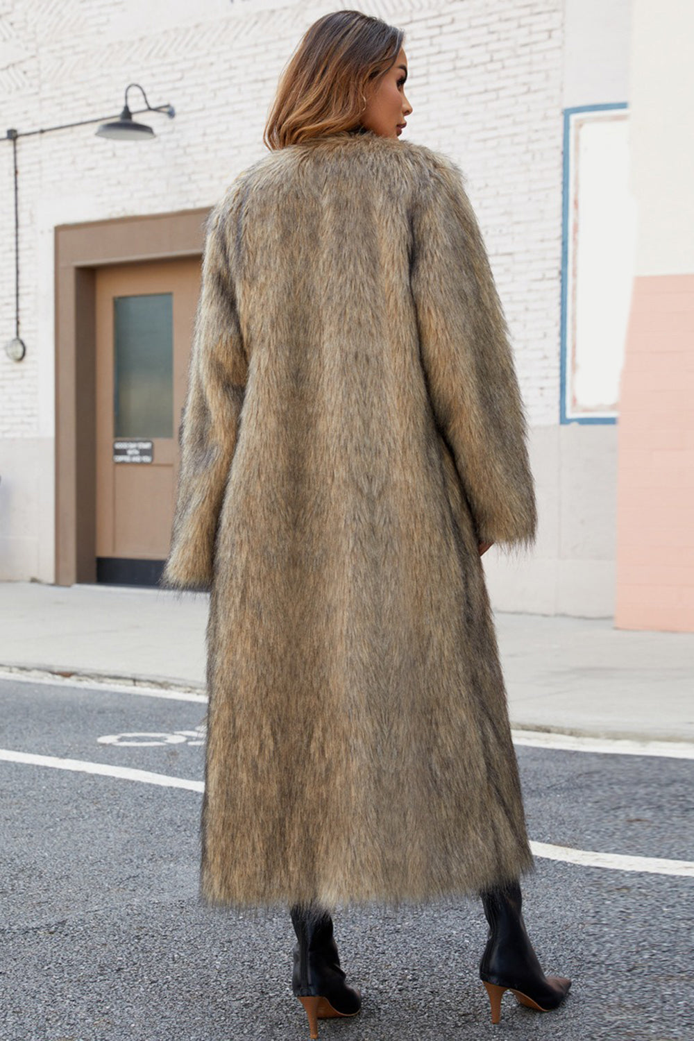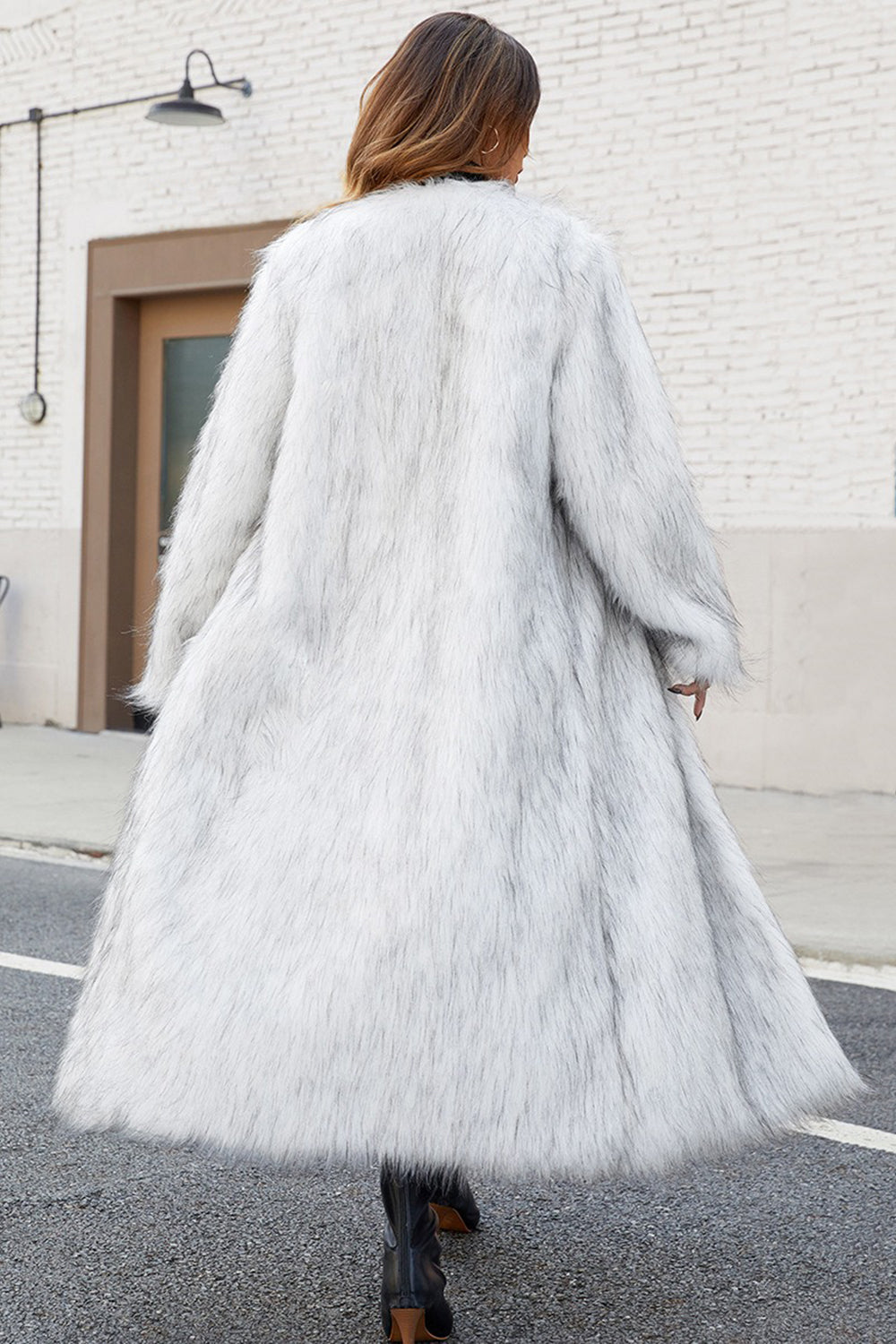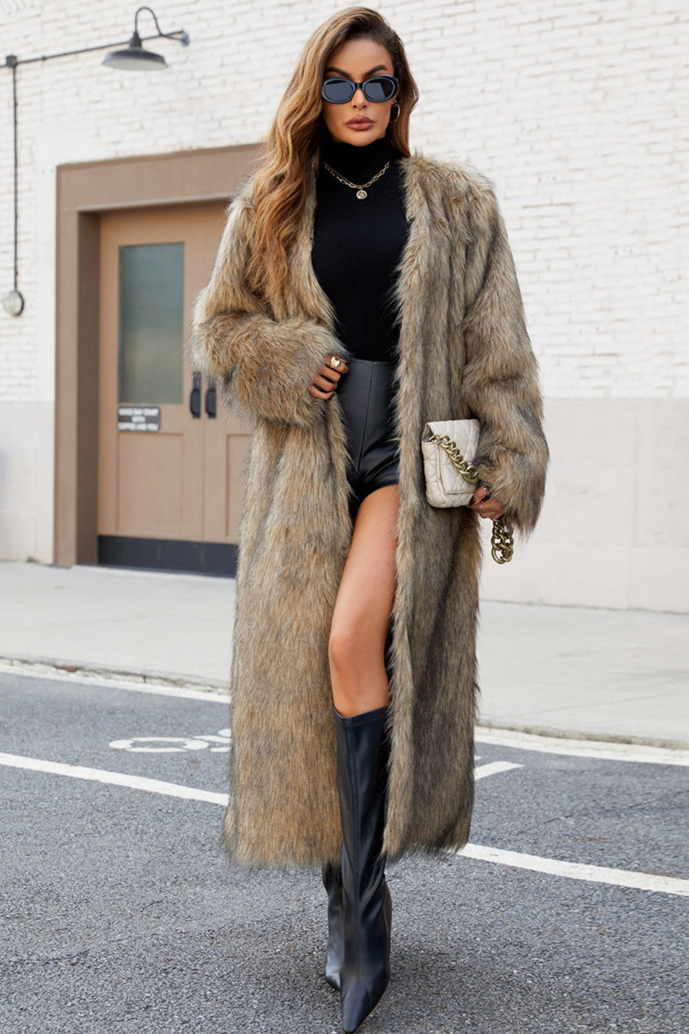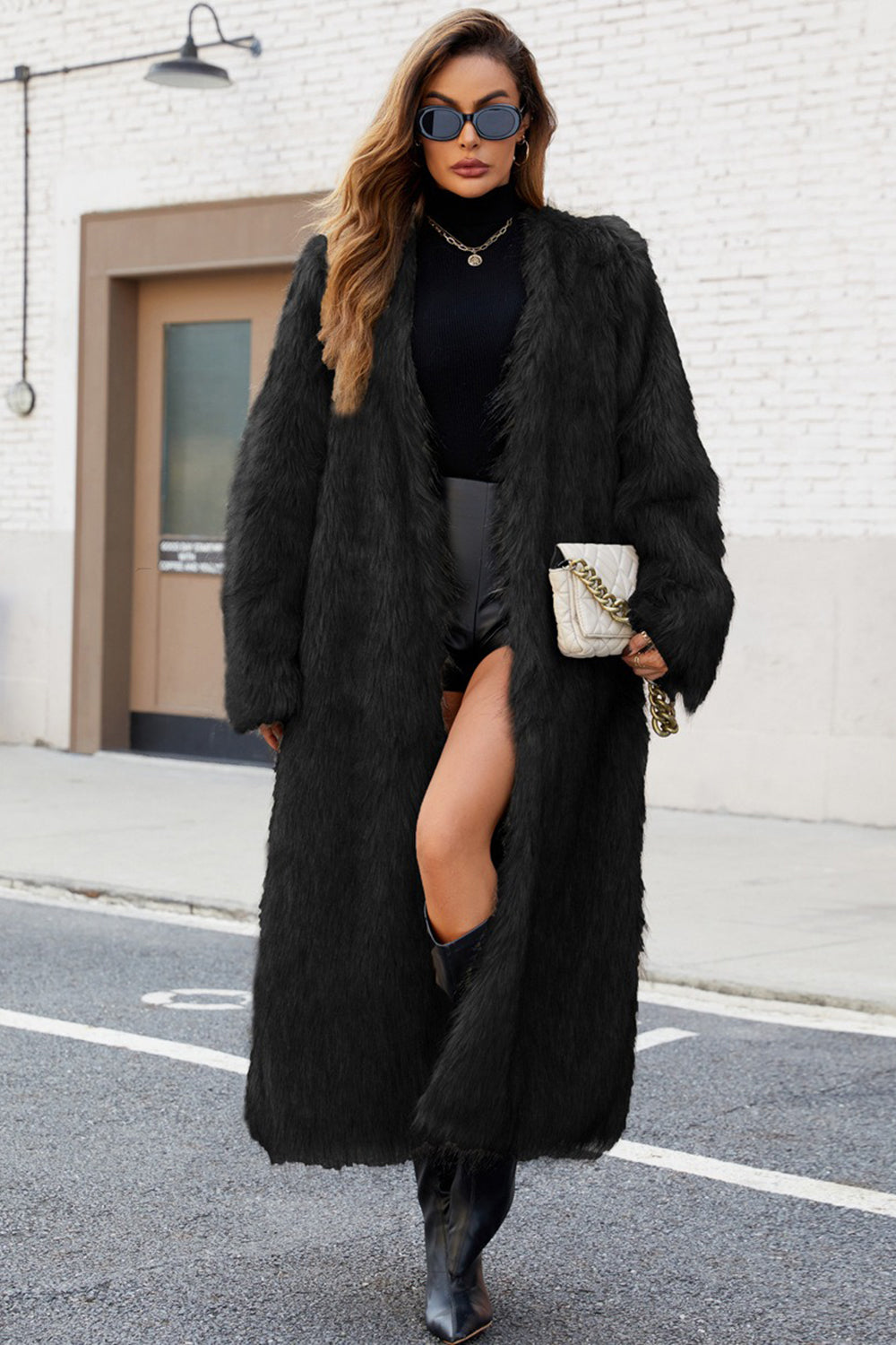 Svart fuskpäls för kvinnor lång vinterrock