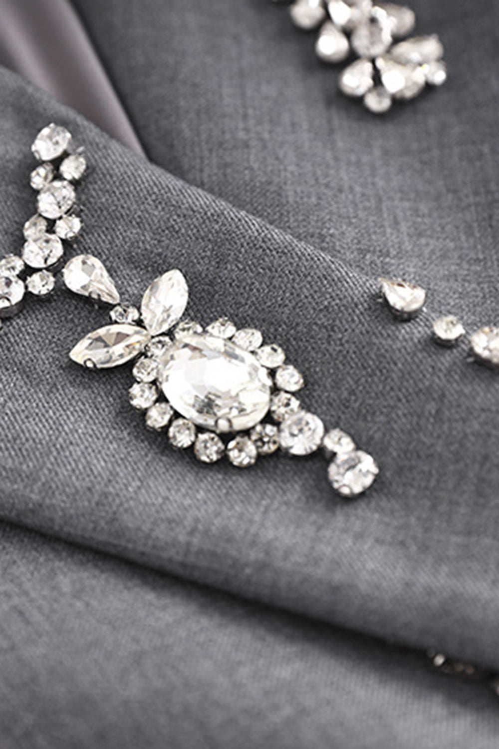 Glittrande Grå Peak Kavajslag Pärlstav Dubbelknäppt Kavaj Klänning