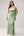 Salvia satin rynkad slida med rynkad serpentin, lång plusstorlek brudtärneklänning med slits