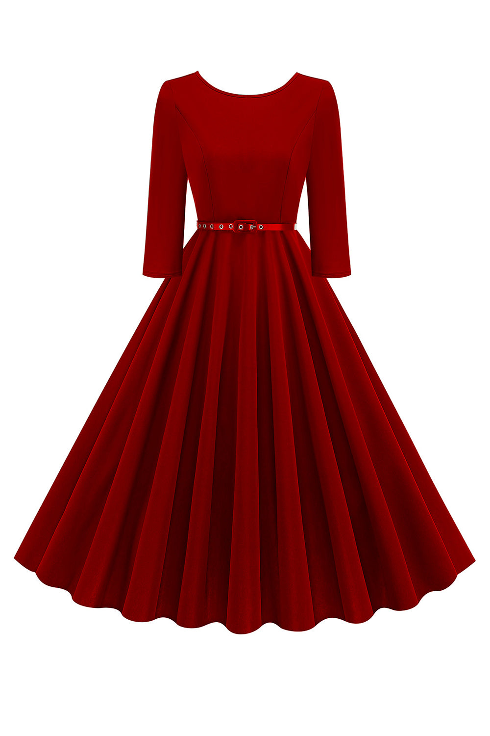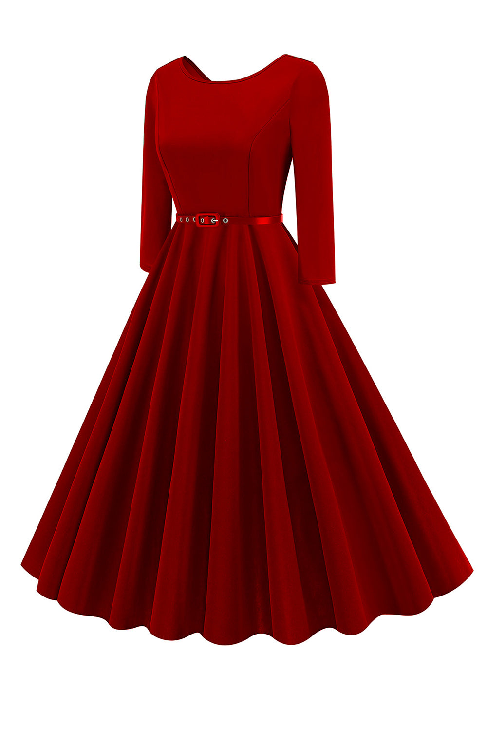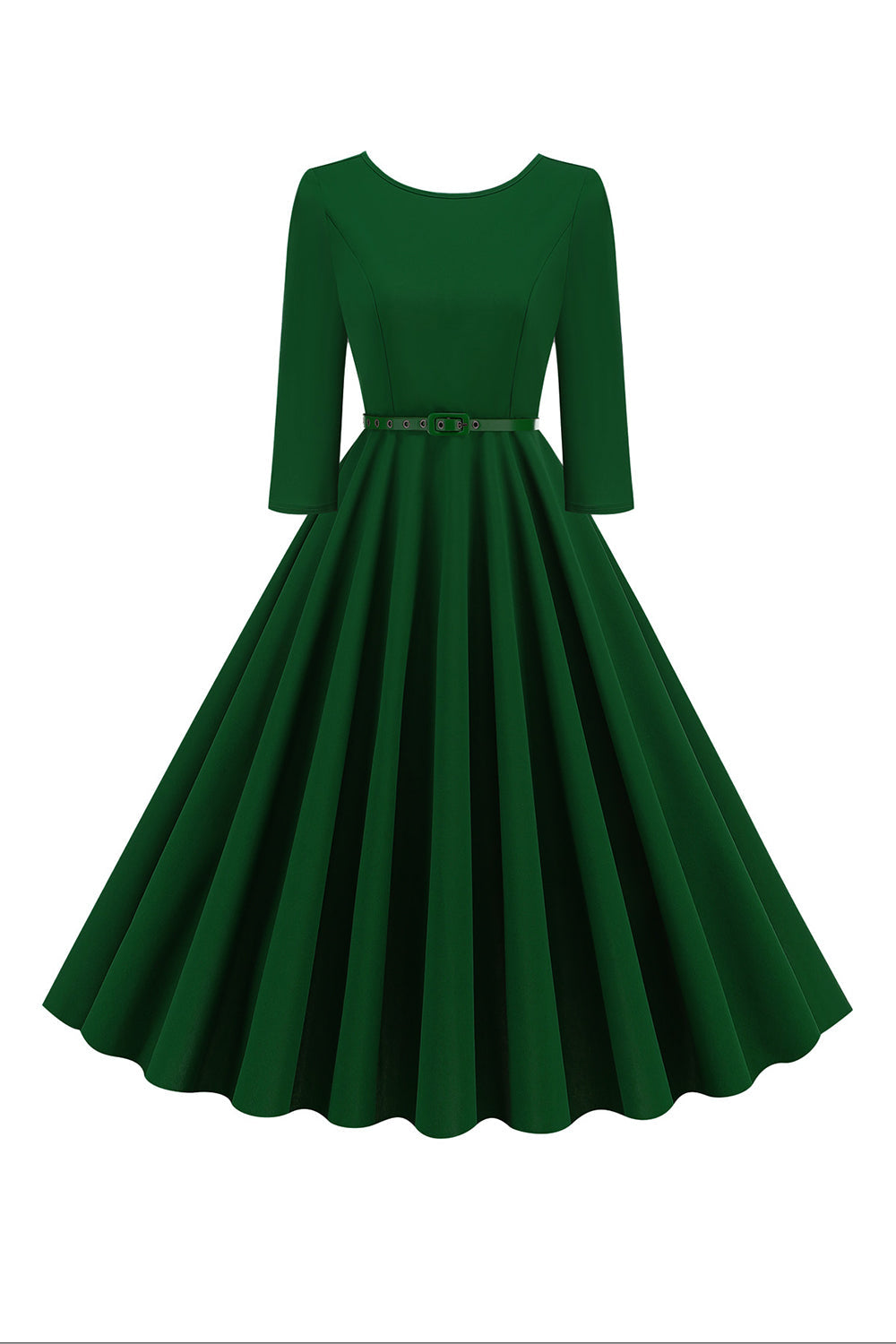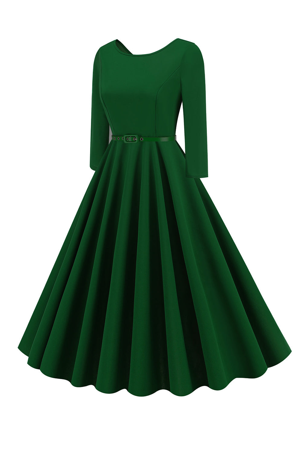 Gul rund hals korta ärmar A-linje Midi 1950-talet klänning med bälte