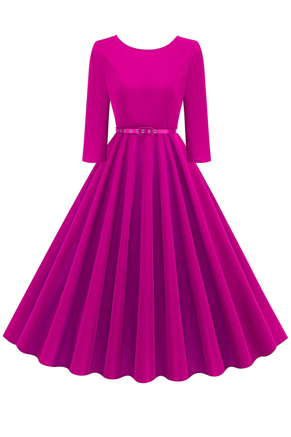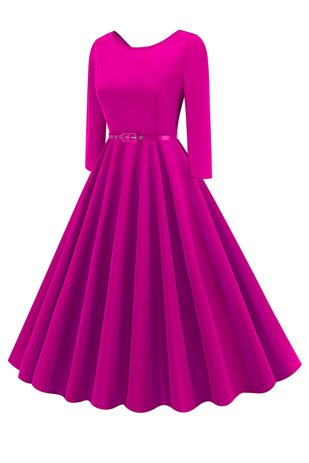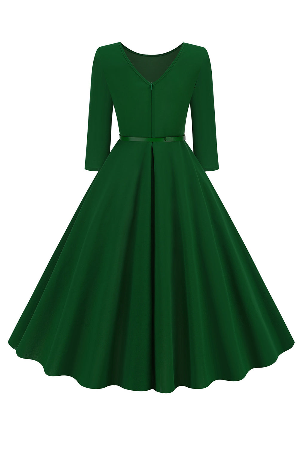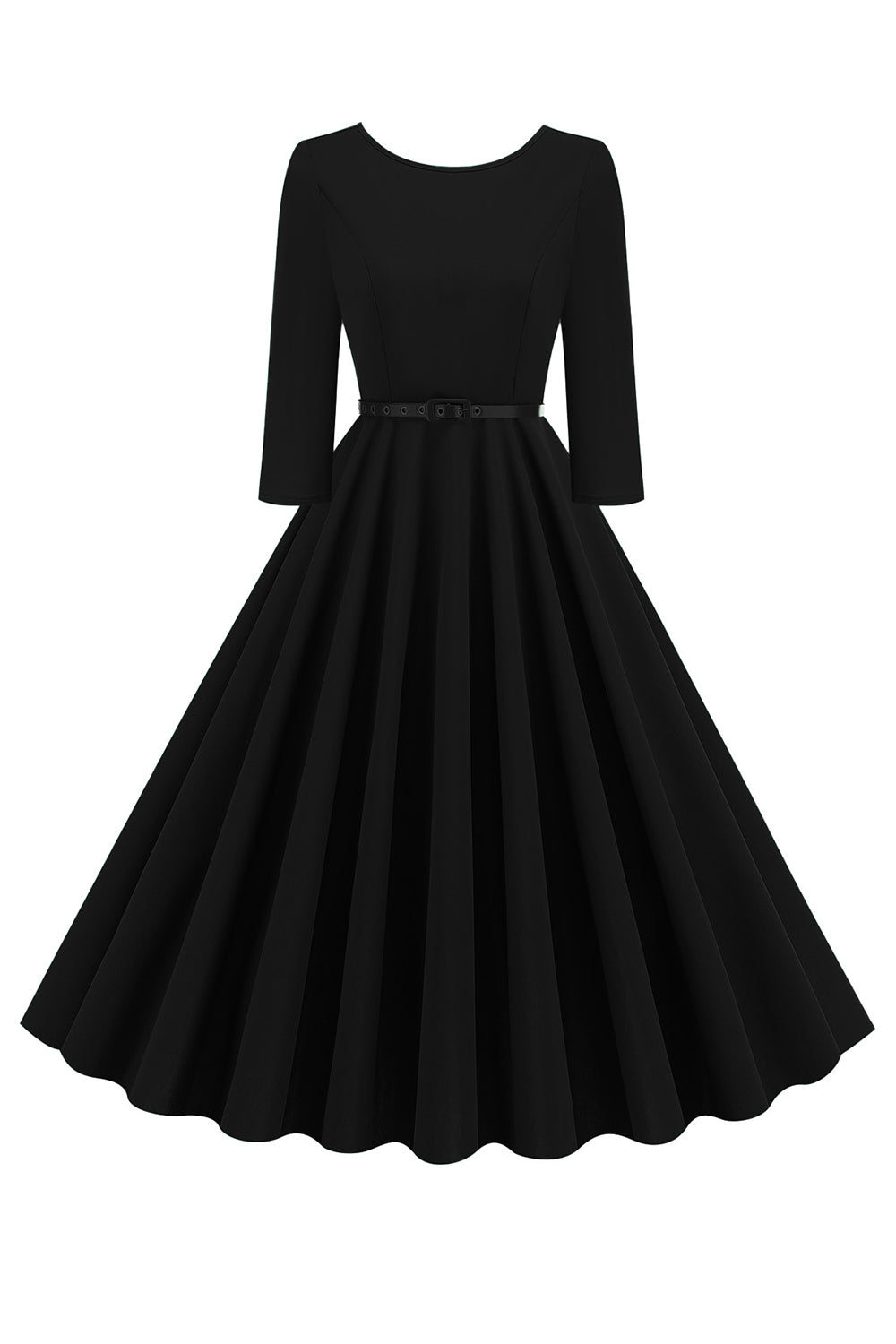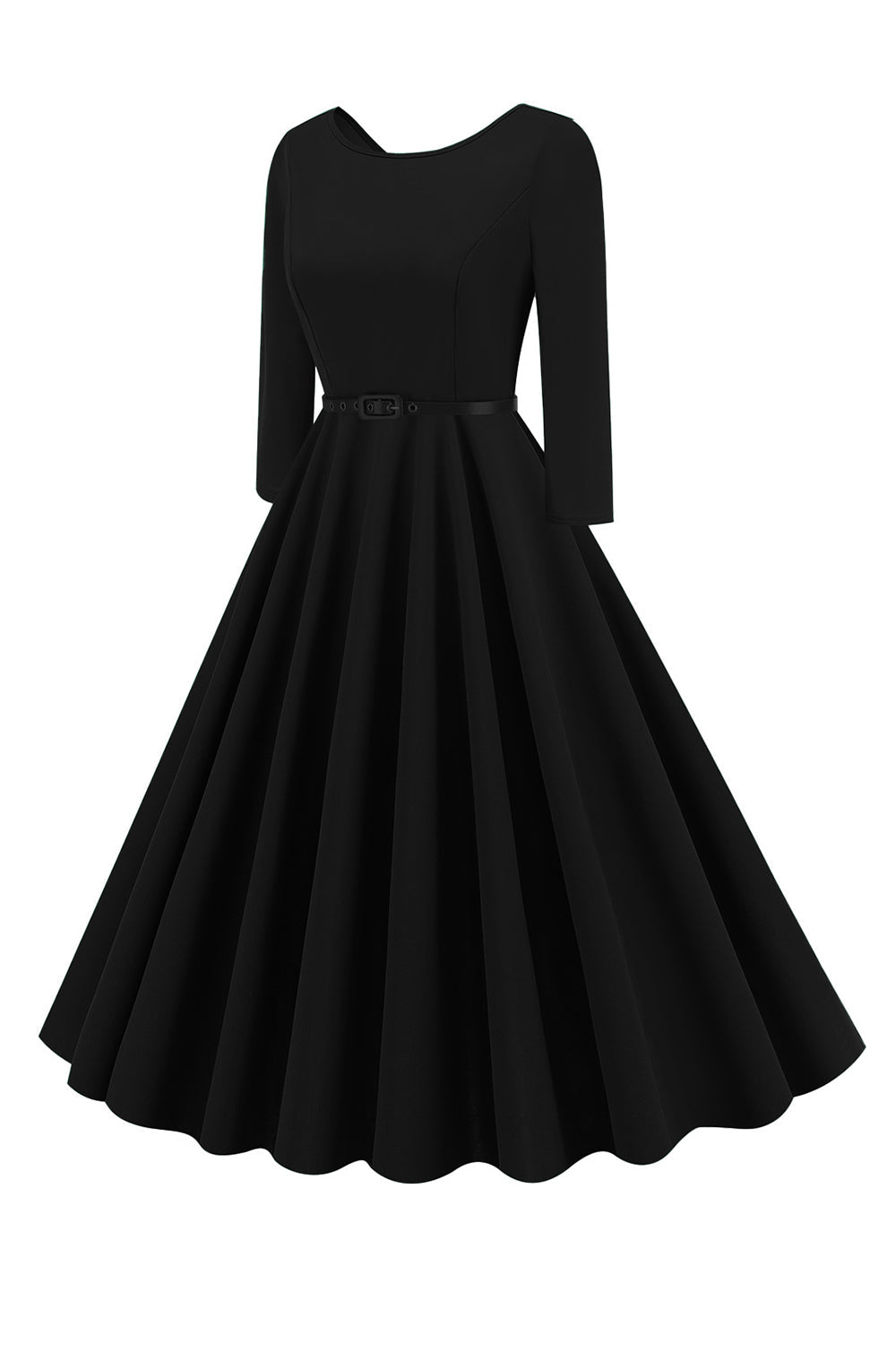 Gul rund hals korta ärmar A-linje Midi 1950-talet klänning med bälte