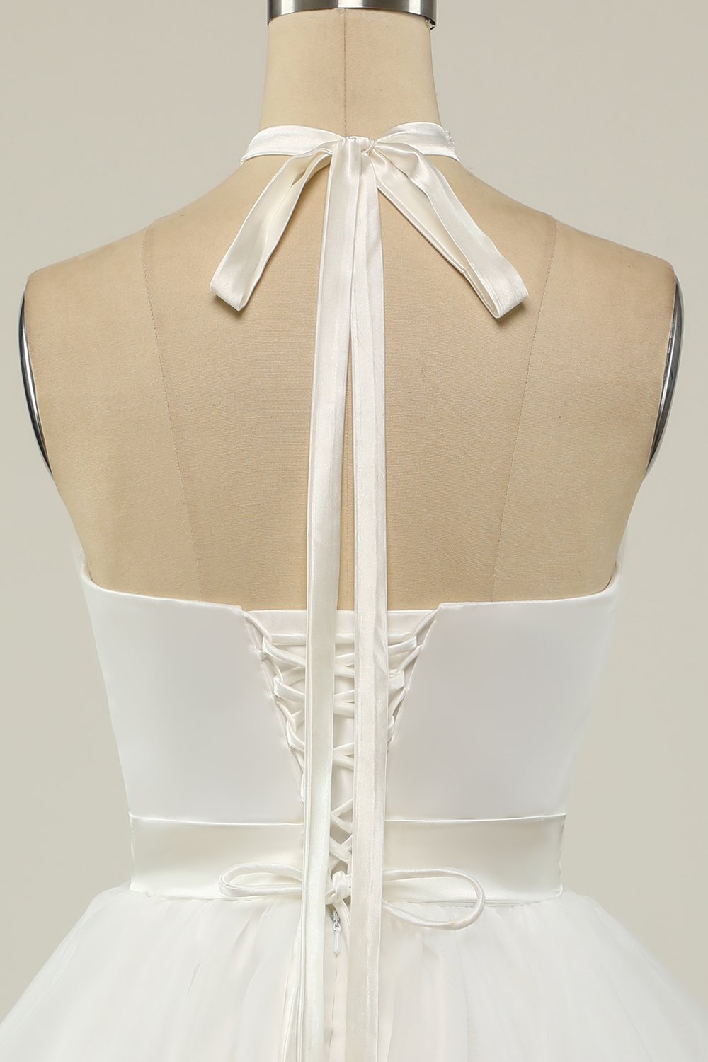 Halterneck Svart Tulle Kort Balklänning