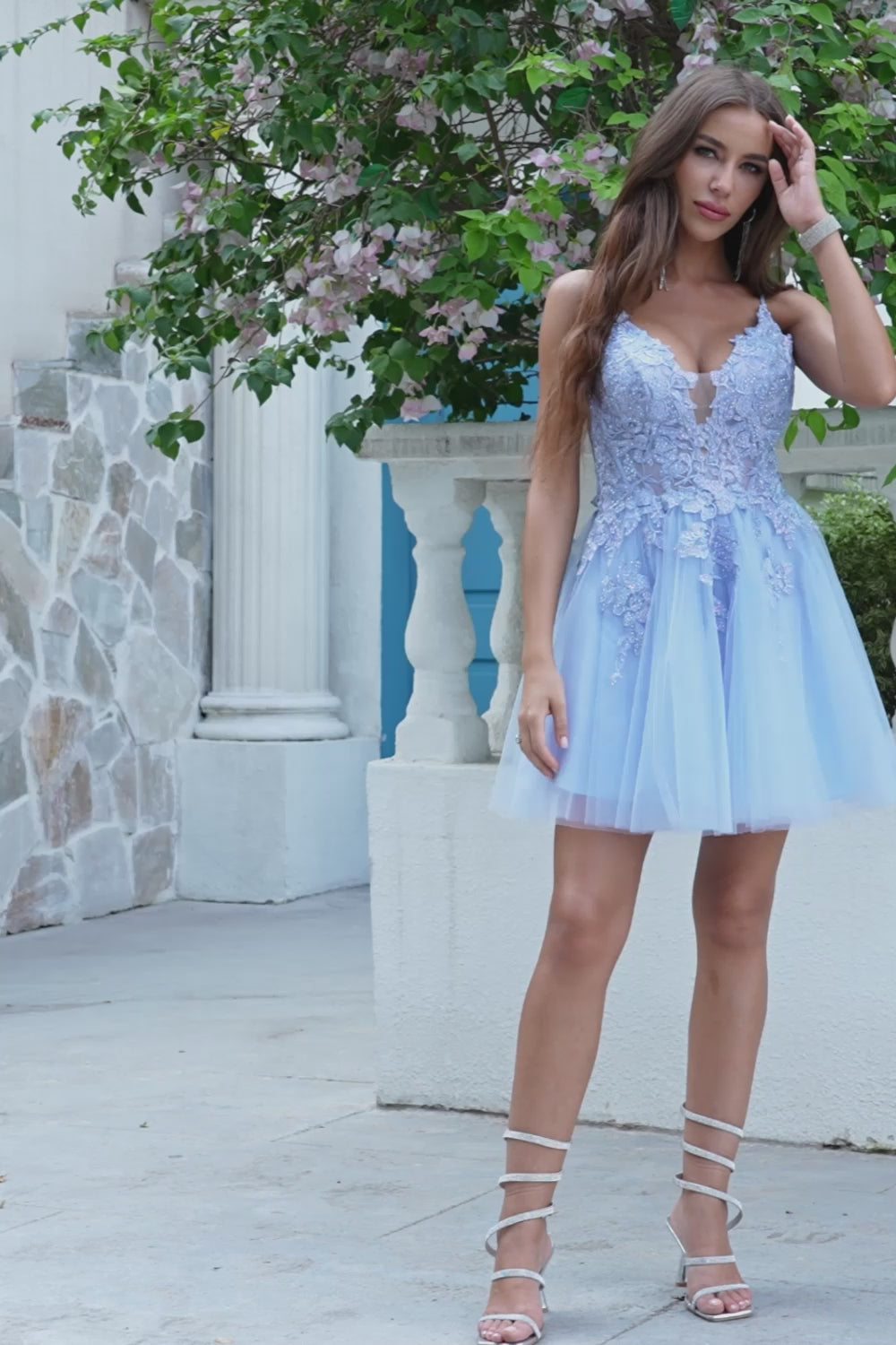 Ljuslila En Linje Spaghetti Remmar Kort Hemkomst Klänning med Applikationer