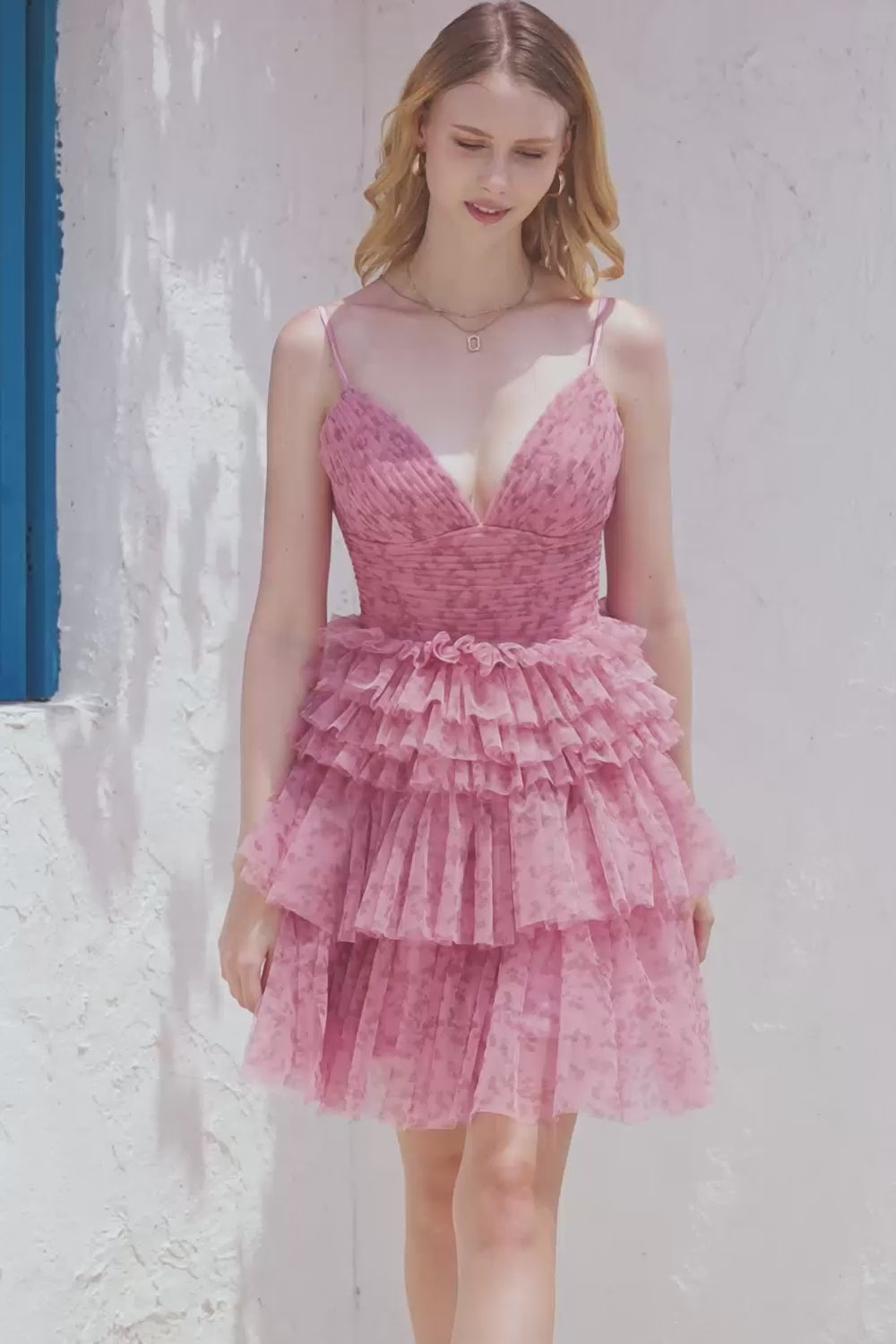 Rodna A-linje Spaghettiband Hemkomstklänning med Volanger