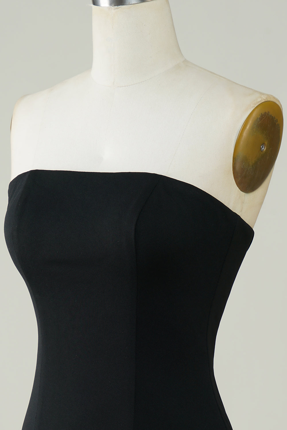 Snygg Mantel Axelbandslös Svart Kort Hemkomstklänning med Tofs