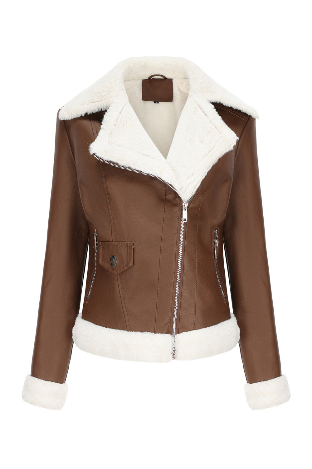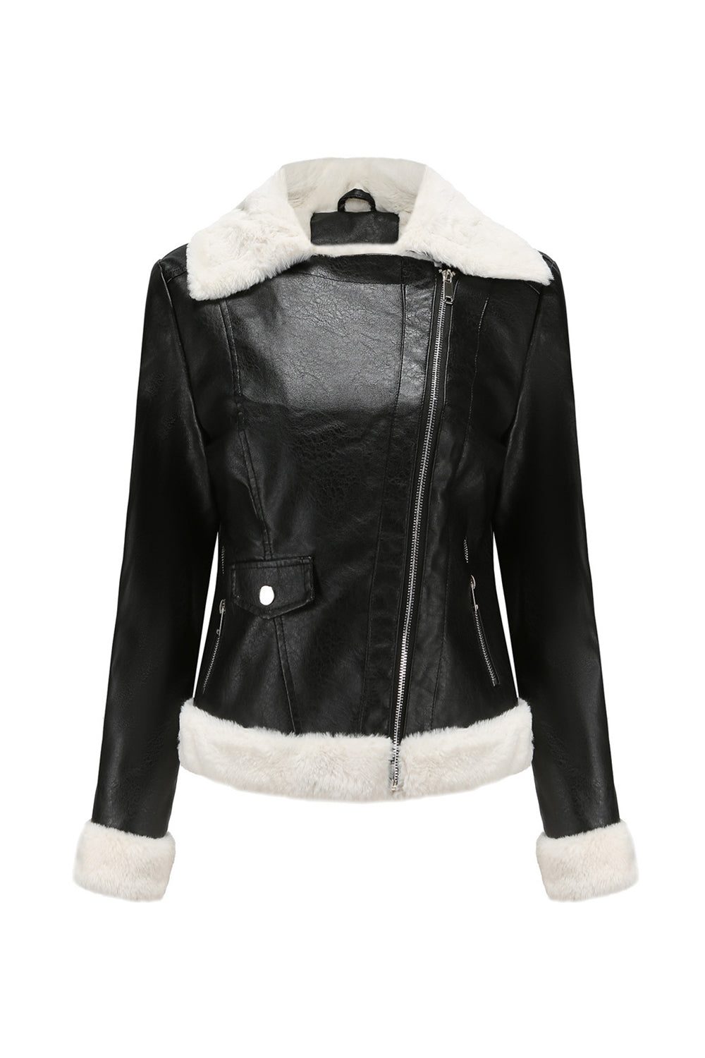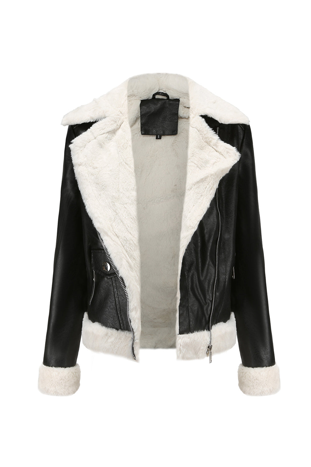Svart Fleece Zip Up Notched Lapel Kort Kappa