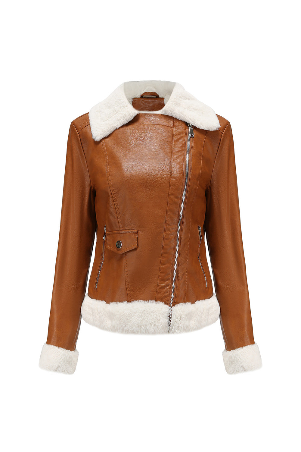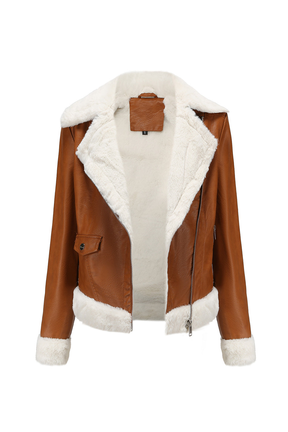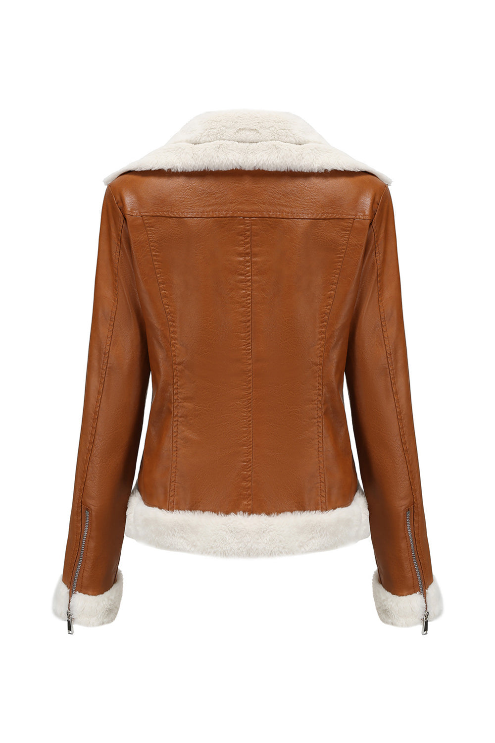 Svart Fleece Zip Up Notched Lapel Kort Kappa