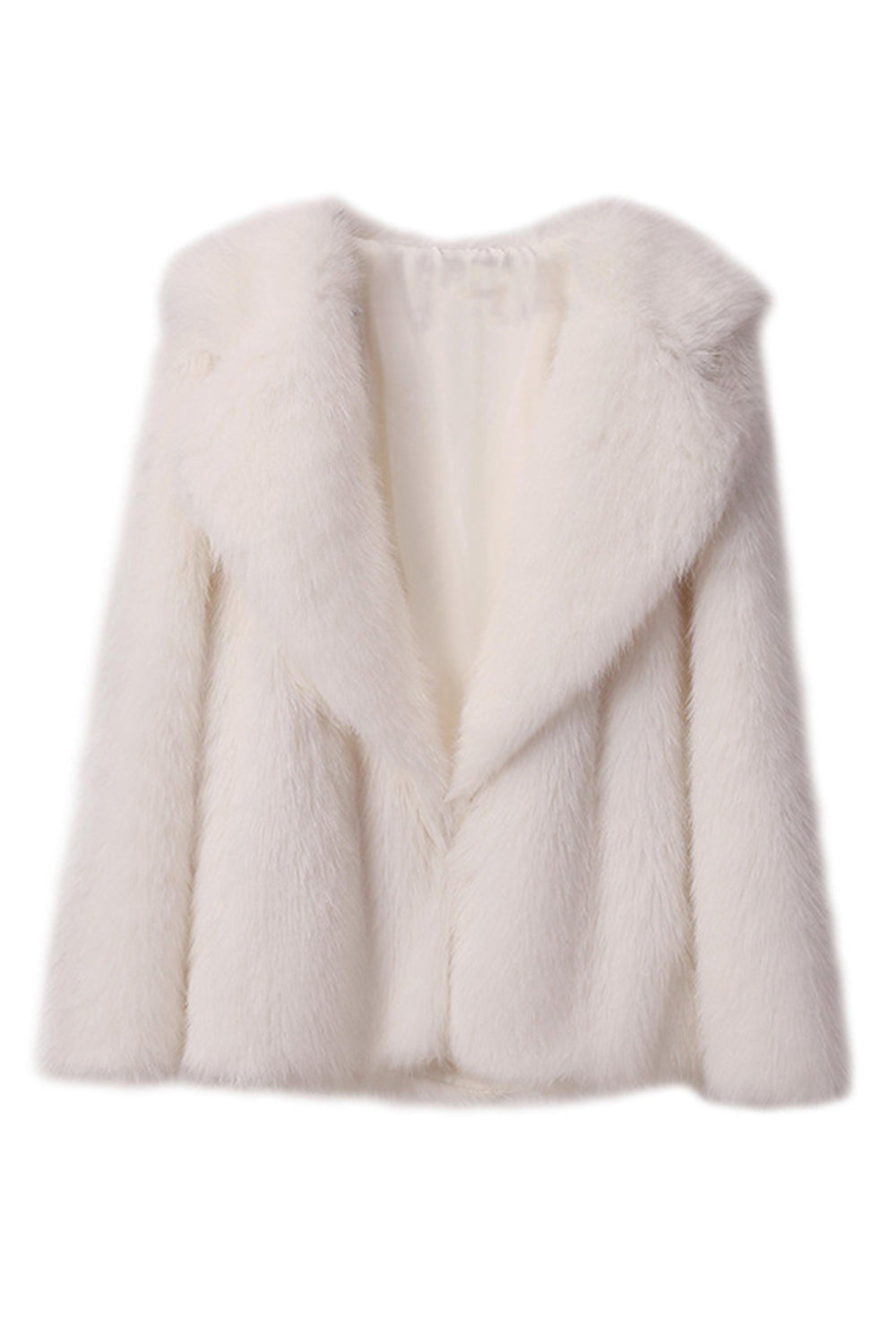 Svart Notched Kavajslag Långärmade Faux Fur Kort Kappa
