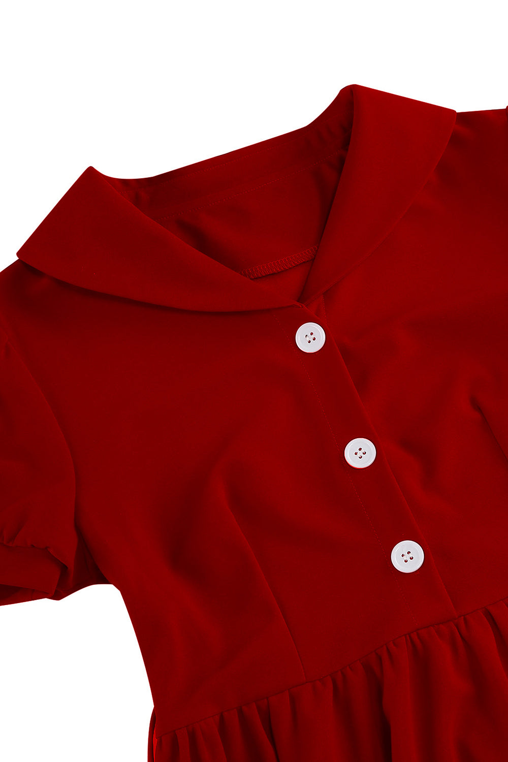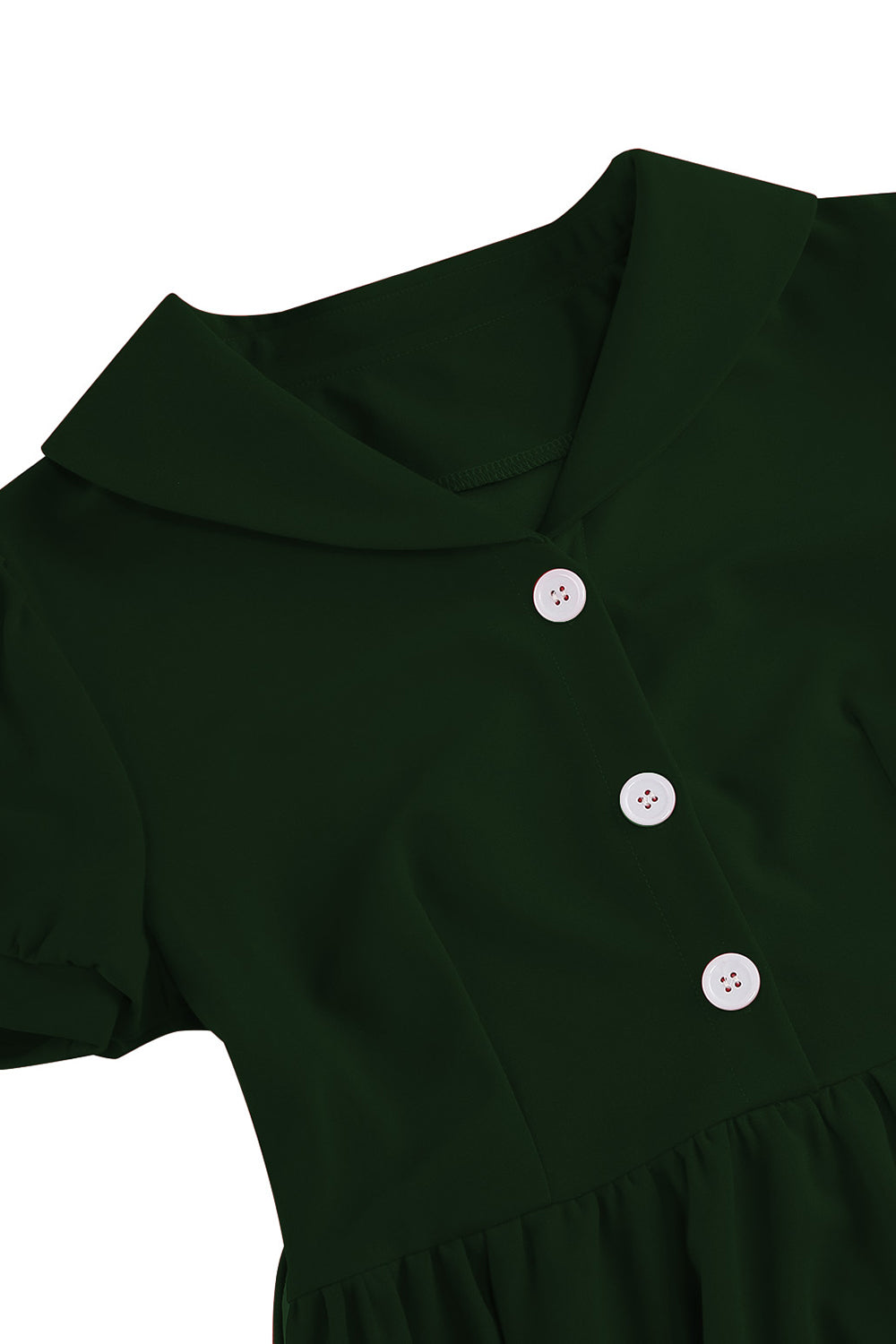 Svart V-ringning Korta ärmar A-linje Midi 1950-tal Klänning med Skärp