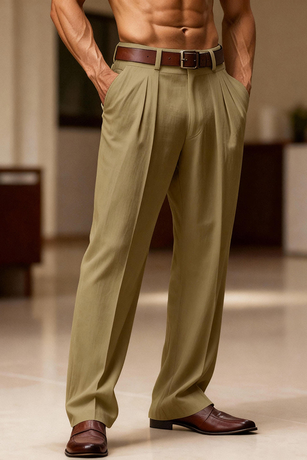 Armégrönt rakt ben, högmidjade herrkostymer, byxor