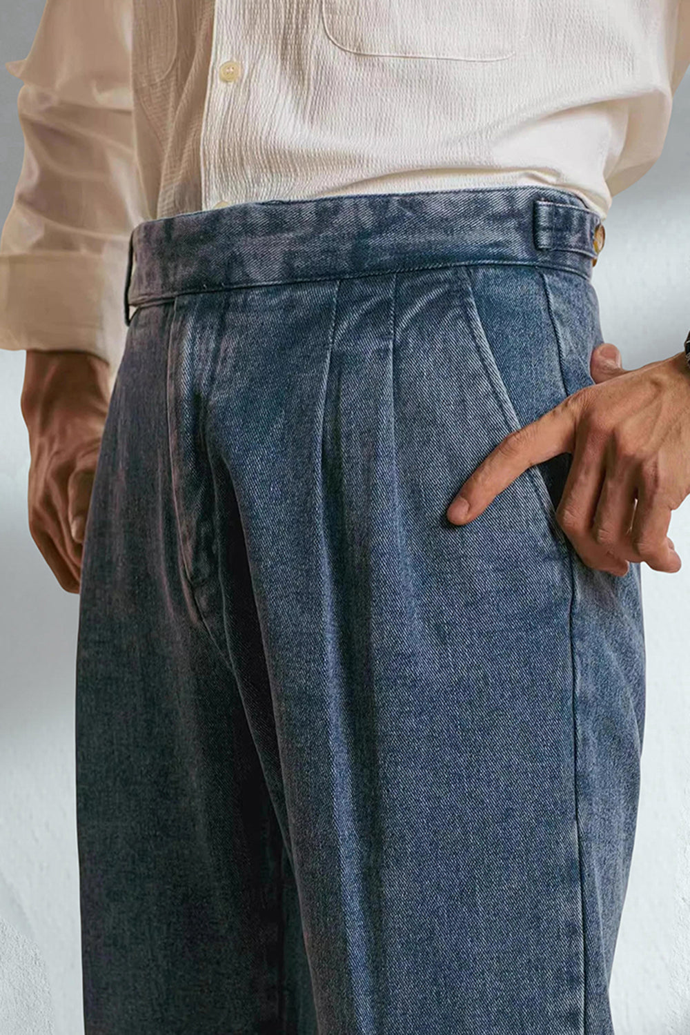 Blå grå rakbeniga denim herrbyxor