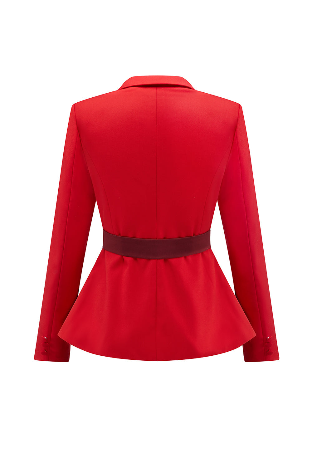 2-delad röd lapptäcke skårad kavajslag kvinnor baldräkter med bälte