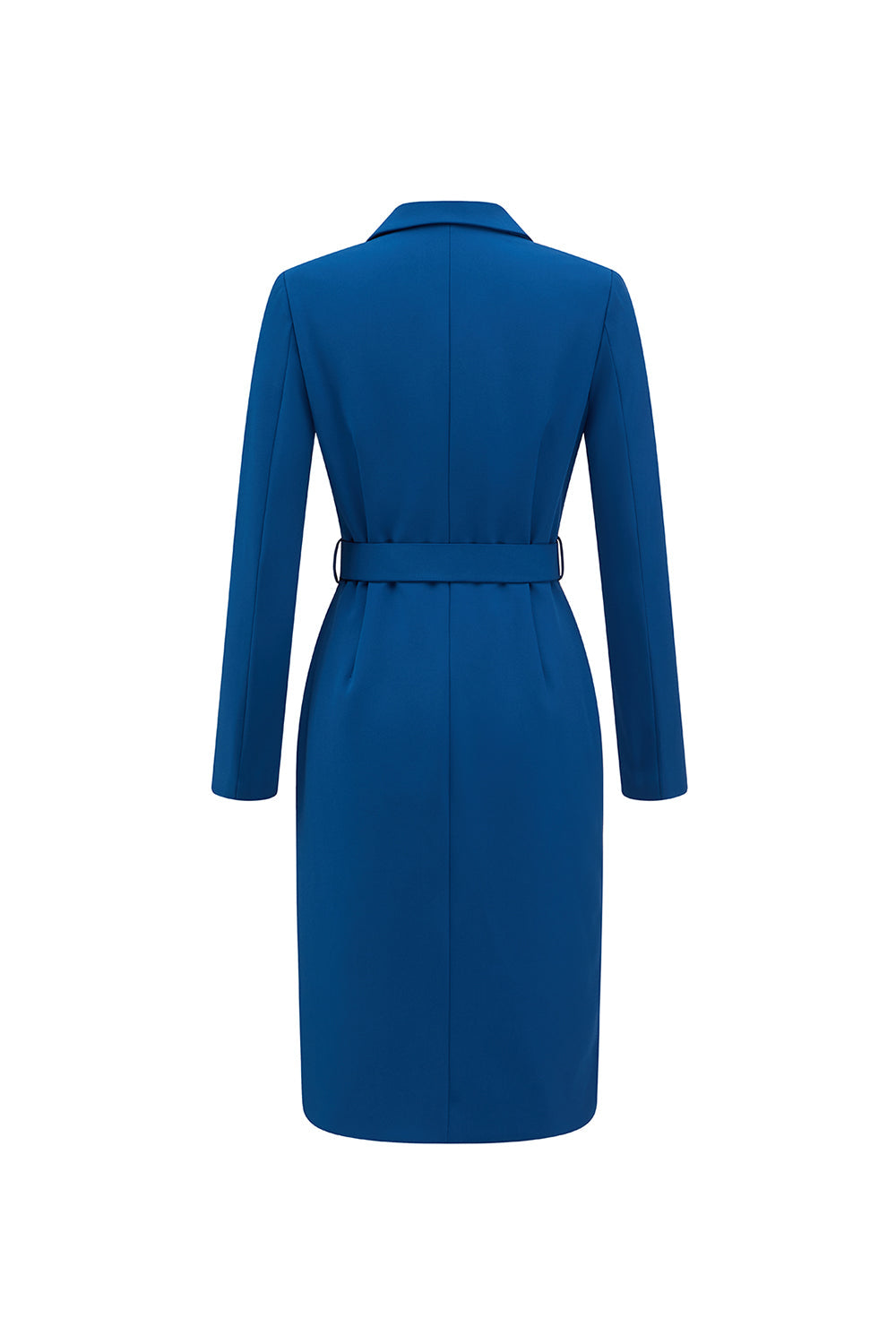 bläck blå skårade slag dubbelknäppt kavaj klänning med bälte