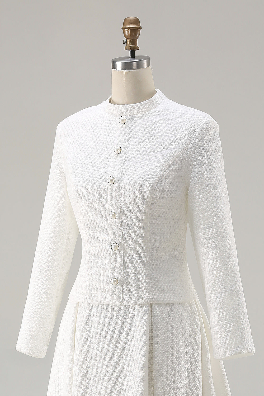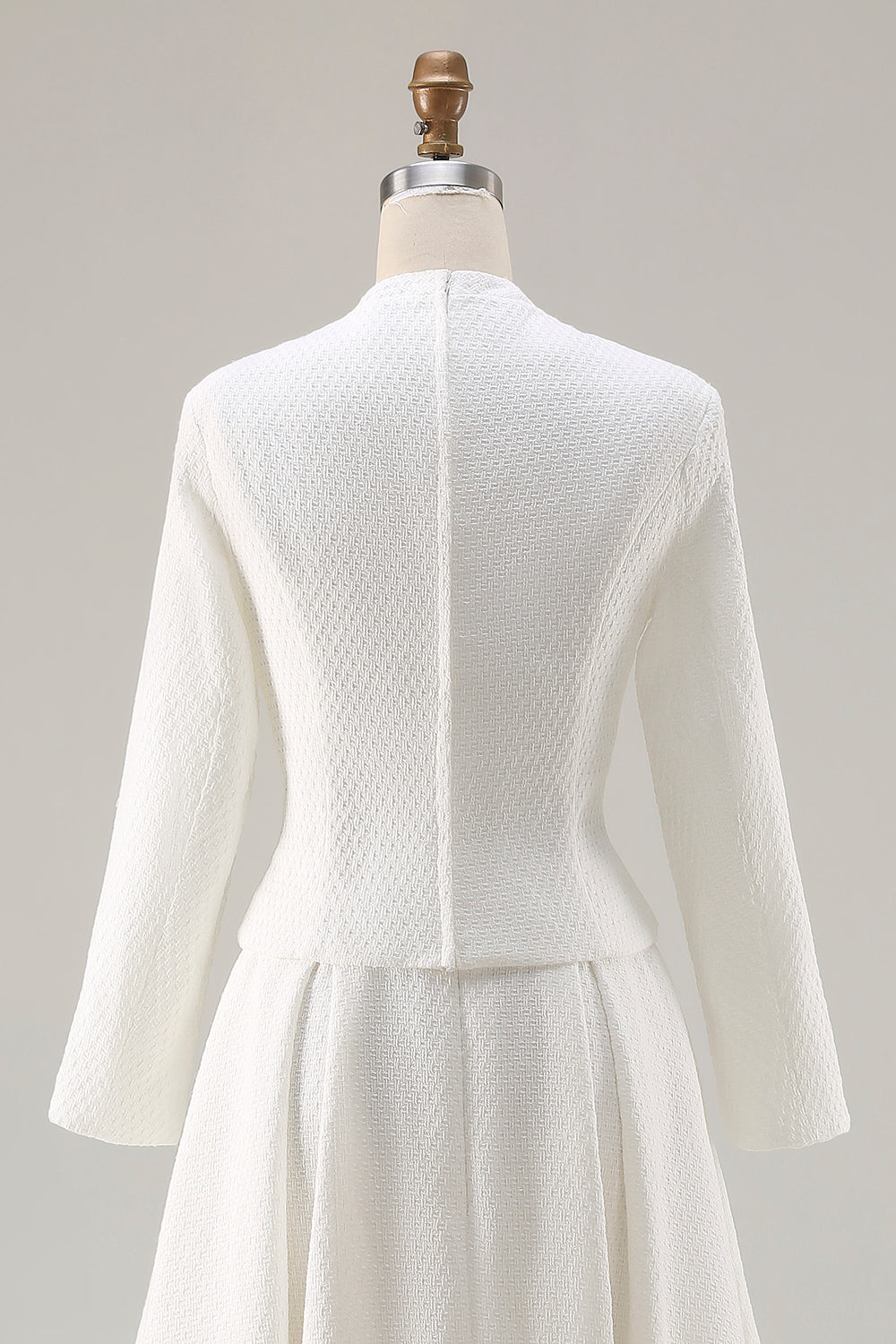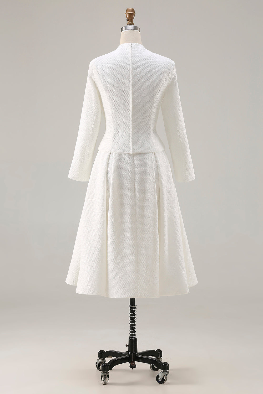 Elfenbensfärgad A-linje långärmad midi-arbetsklänning med rund hals