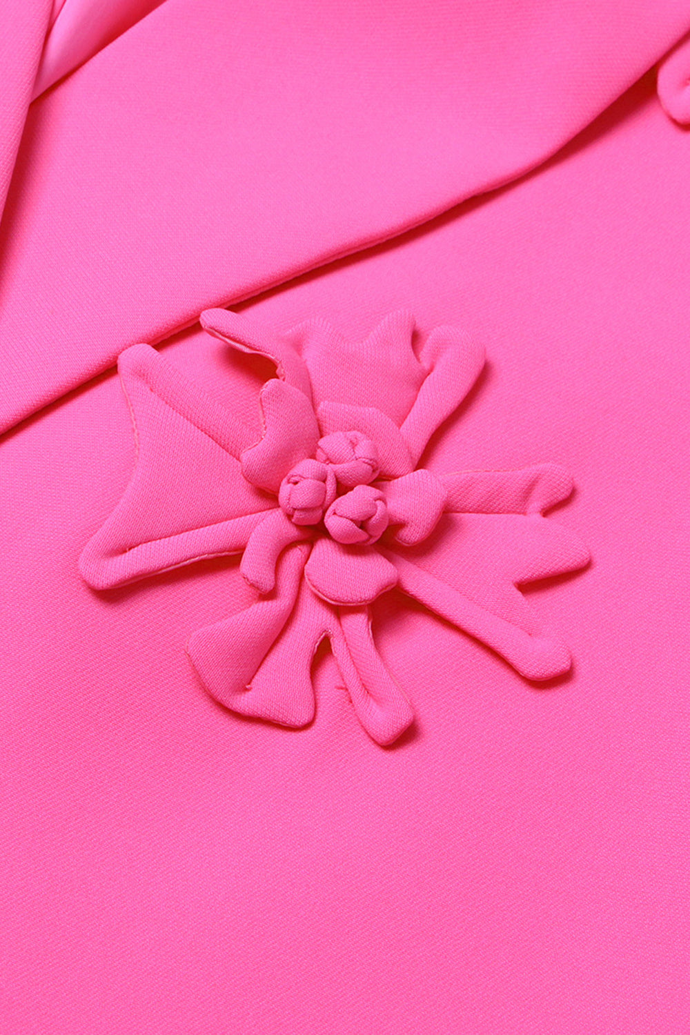 Fuchsia Double Breated Peak Lapel Women Blazer med blommor