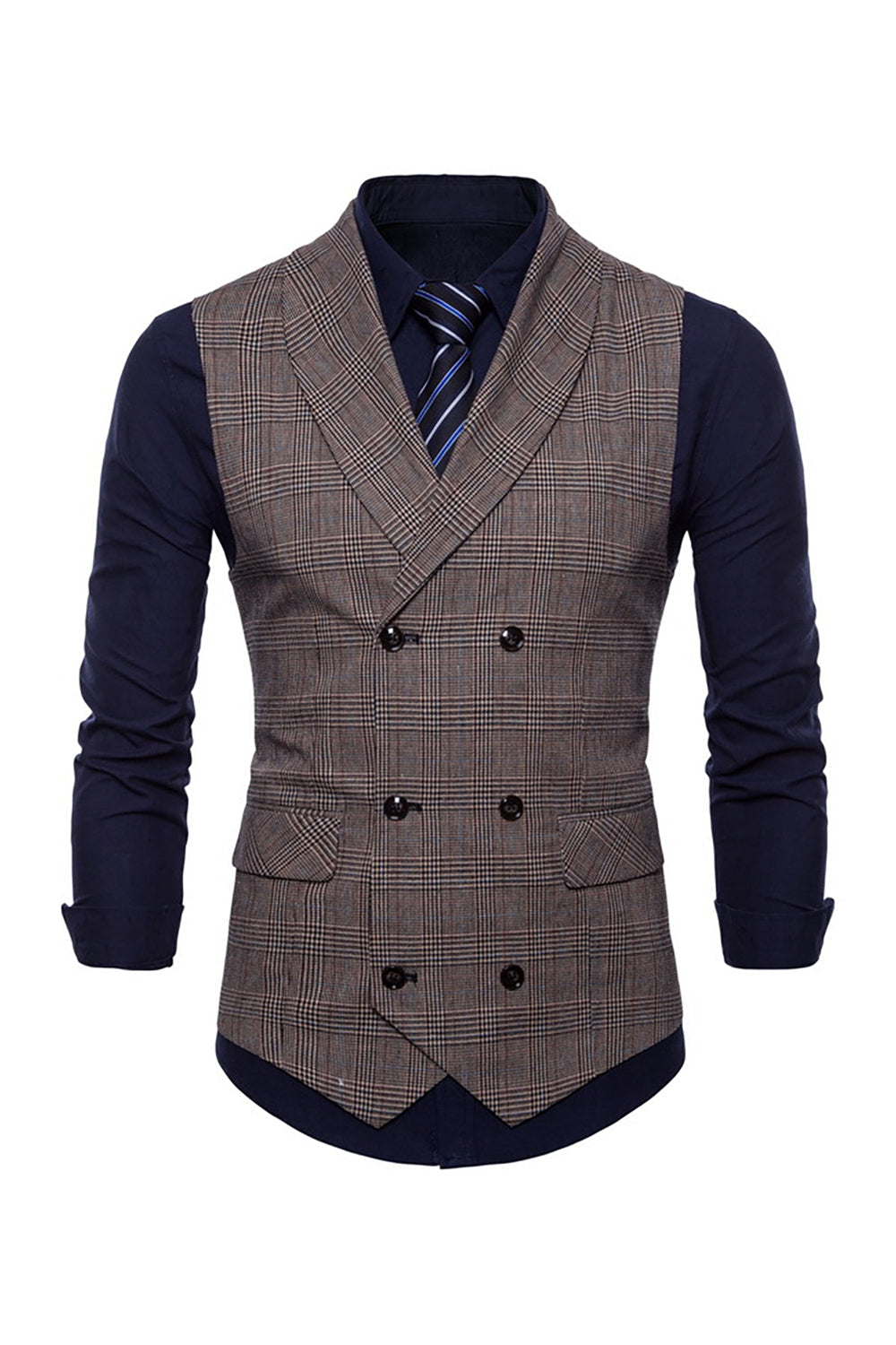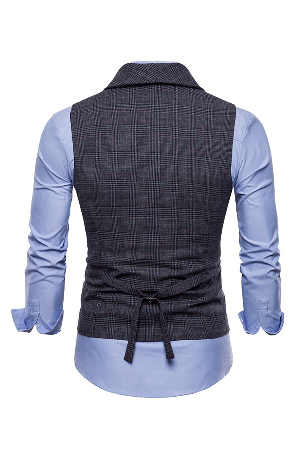 Grå Pinstripe Dubbelknäppt Sjal Lapel Kostymväst Herr
