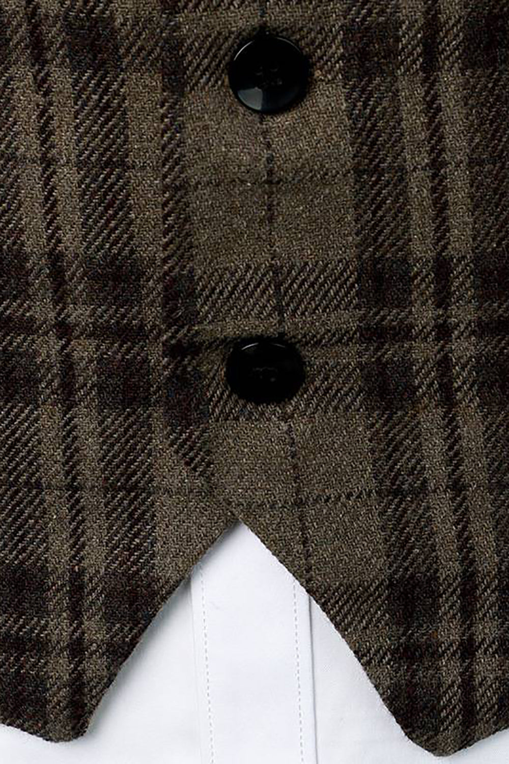 Mörkbrun randig enkelknäppt retro kostymväst för män
