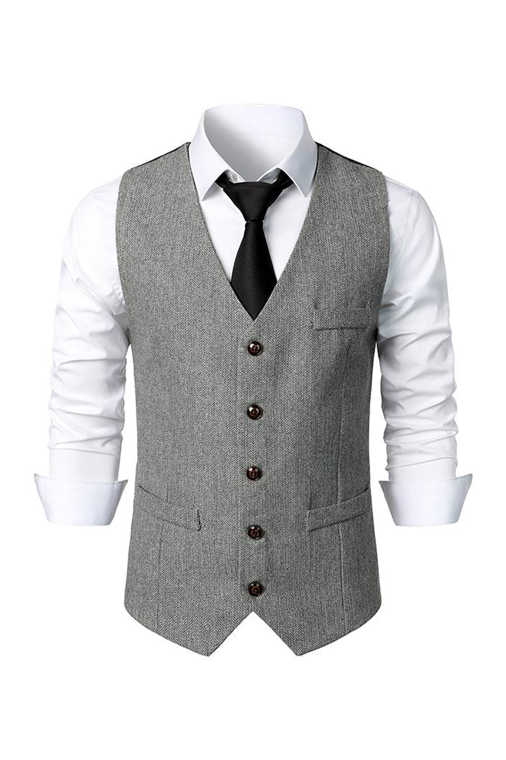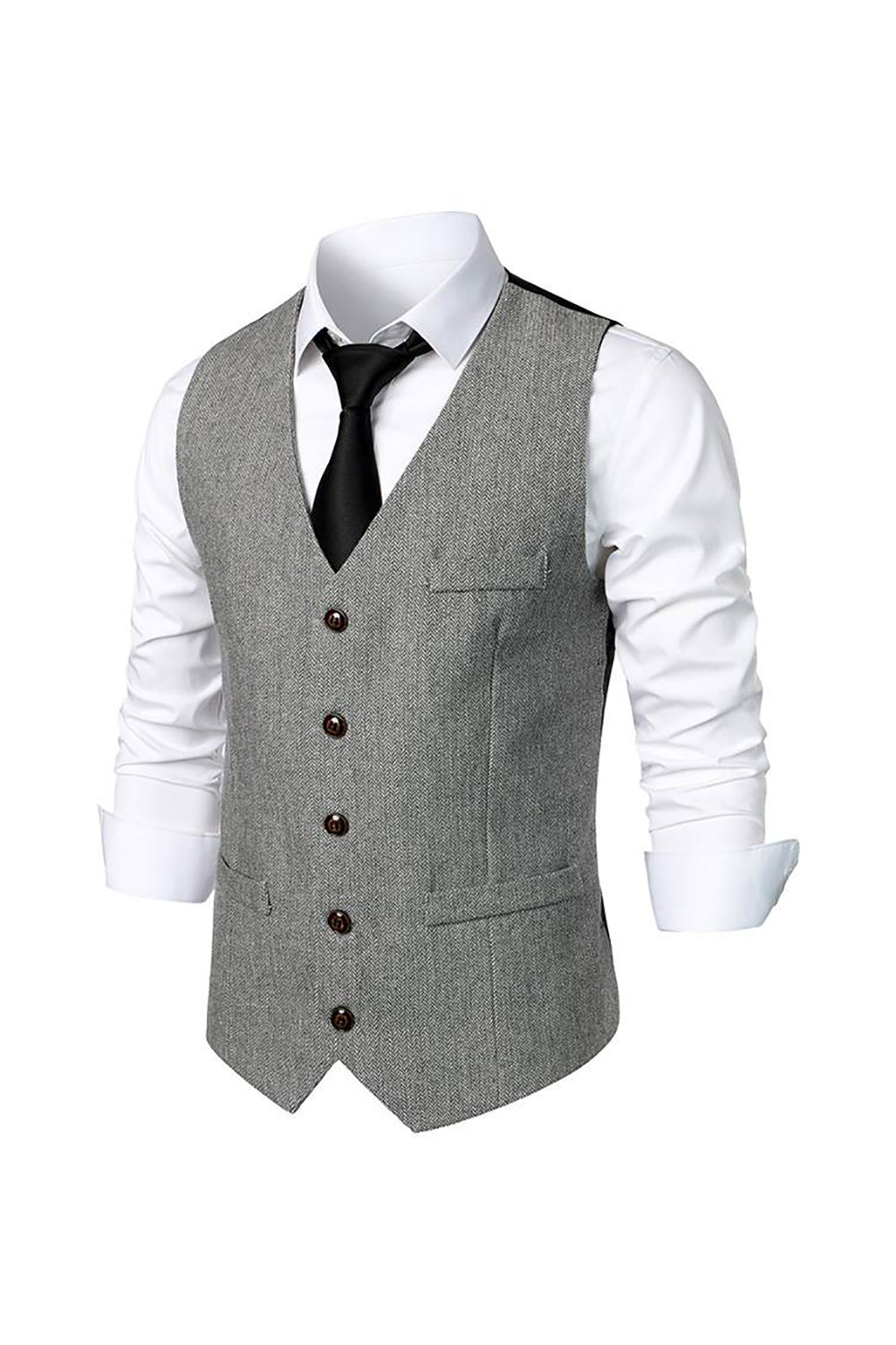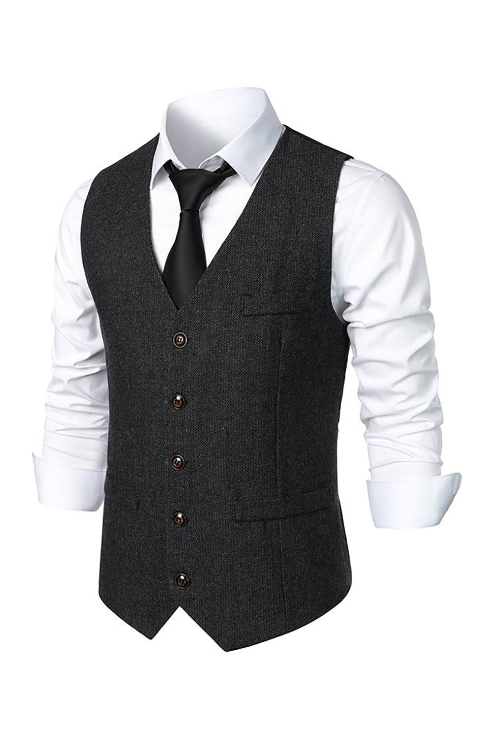 Svart enkelknäppt V-ringad Retro Casual Väst för män