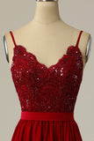 Vinröd Lång Balklänning med pärla spets