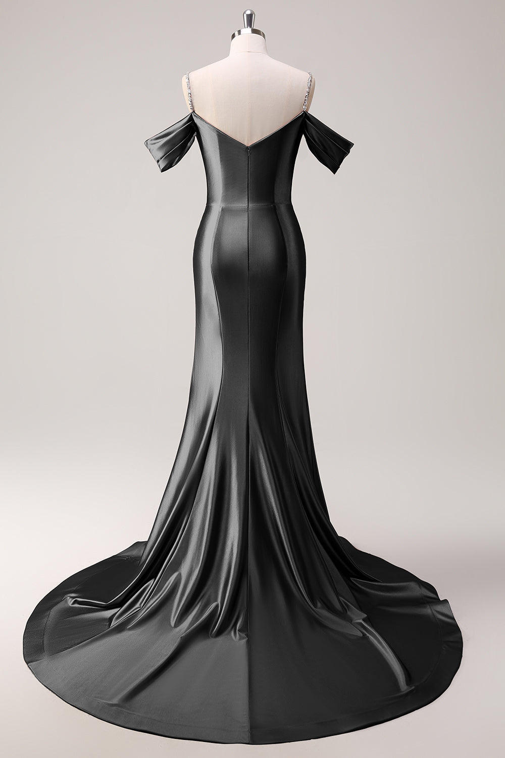 Glitter Rodnande Sjöjungfru Pärlstav Spaghetti Straps Lång Bal Klänning