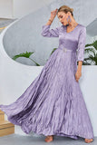 Lila Plisserad A Line Långärmad Balklänning