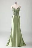 Påfågel Sjöjungfru Korsett Spaghetti Remmar Lång Balklänning med slits