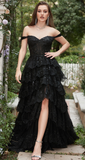 Svart Off the Shoulder Korsett Balklänning med slits