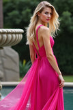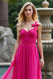 A Line Fuchsia Remmar Rynkad Lång Tyll Balklänning
