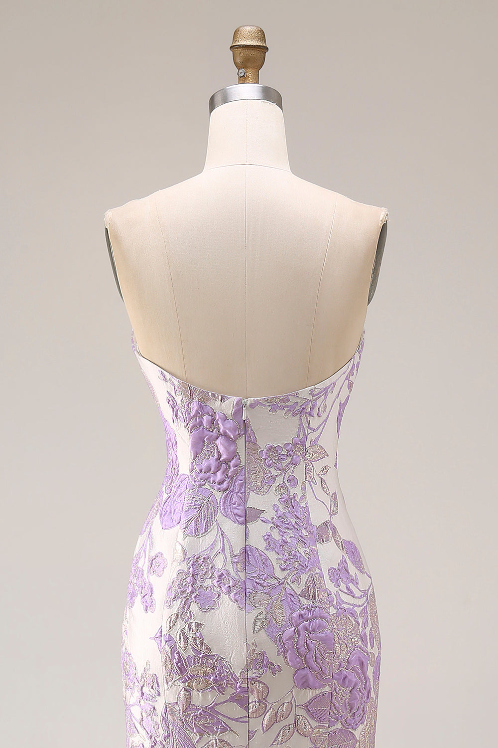 Axelbandslös sjöjungfrulila jacquard satinbrokad lång blommig balklänning