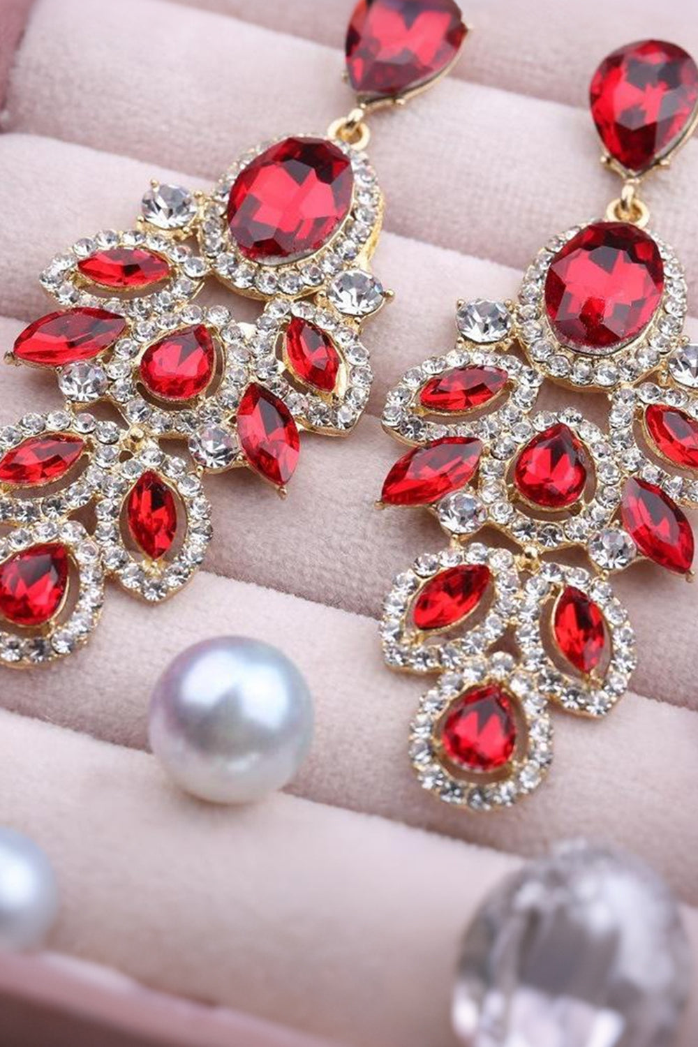 Glittrande mörkgröna bladformade långa baldroppörhängen med strassstenar