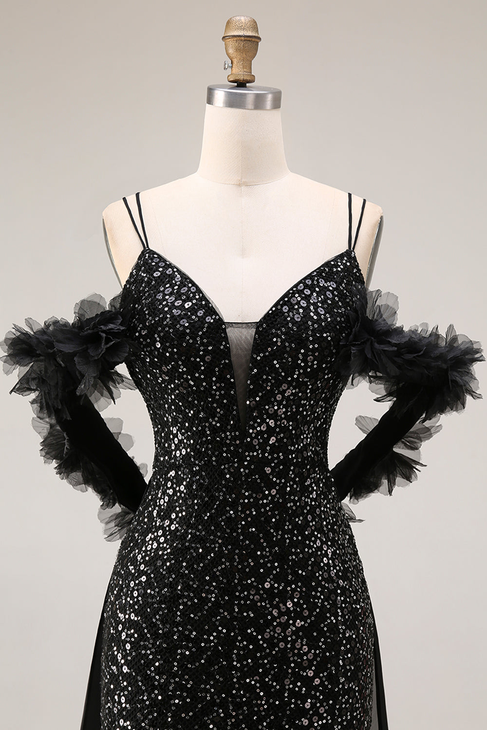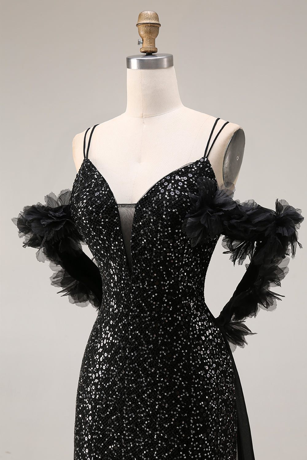 Glittrande paljetter svart kallaxel Mermadid lång balklänning med slits