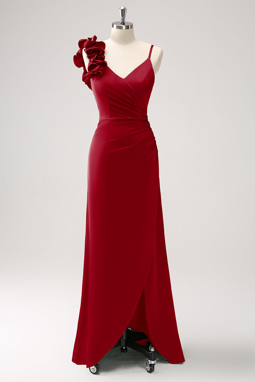 Olivgrön veckad Satin Brudtärna Klänning med slits