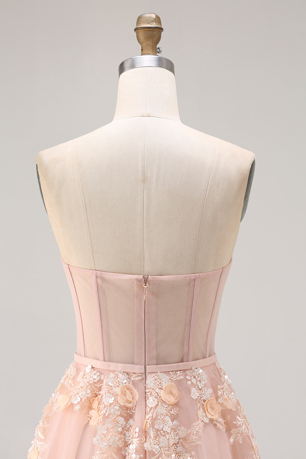 Rougefärgad A-linje med tyllapplikerad korsett Konvertibel lång balklänning med ärmar