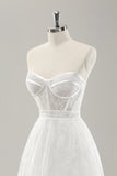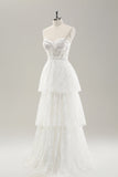 Vit Axelbandslös Korsett Tiered Lång Bröllopsklänning
