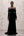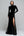 Svart Sammet Slida V-ringad Lång Formell Klänning med Spets