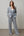 Blå Blomma Cowl Hals Slida Print Lång Brudtärna Klänning med Slits
