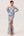 Vit Blå Blomma V-hals Slida Tryck Långärmad Brudtärna Klänning med slits