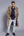 Vit Grå Lång Front Öppen Pikékrage Päls Coat