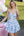 Vit Blå Blommig Nivåer En Linje Cocktail Klänning