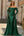 Mörkgrön axelbandslång, skrynklig satinsjöjungfruklänning med långa ärmar och långärmat