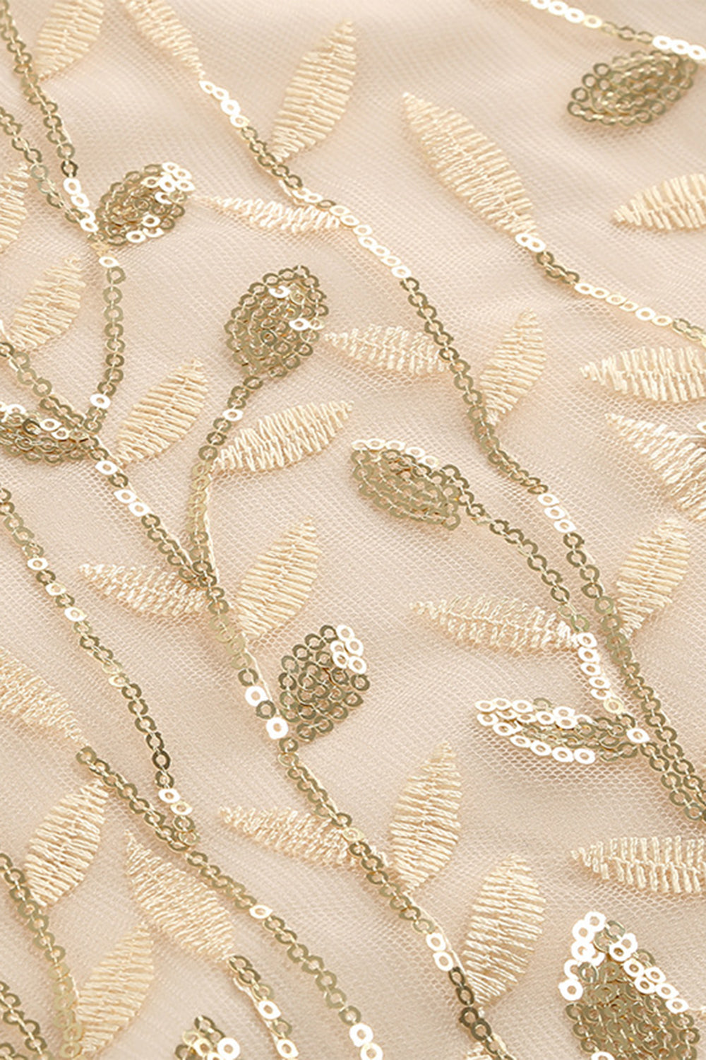 Aprikos Paljetter Blad Broderad Mesh Overlay Elegant Vintage Klänning