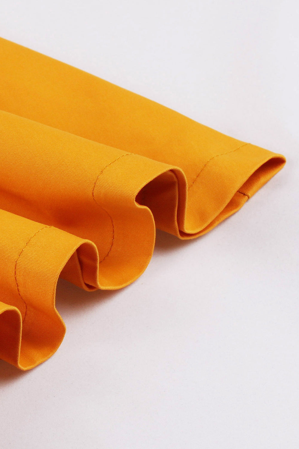 Gul volang skårad kavajslag med bälte rosetter 1950-talsklänning med fickor