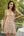 Khaki Tryckt Slipsrem Fyrkantig Hals Lång Sommarklänning